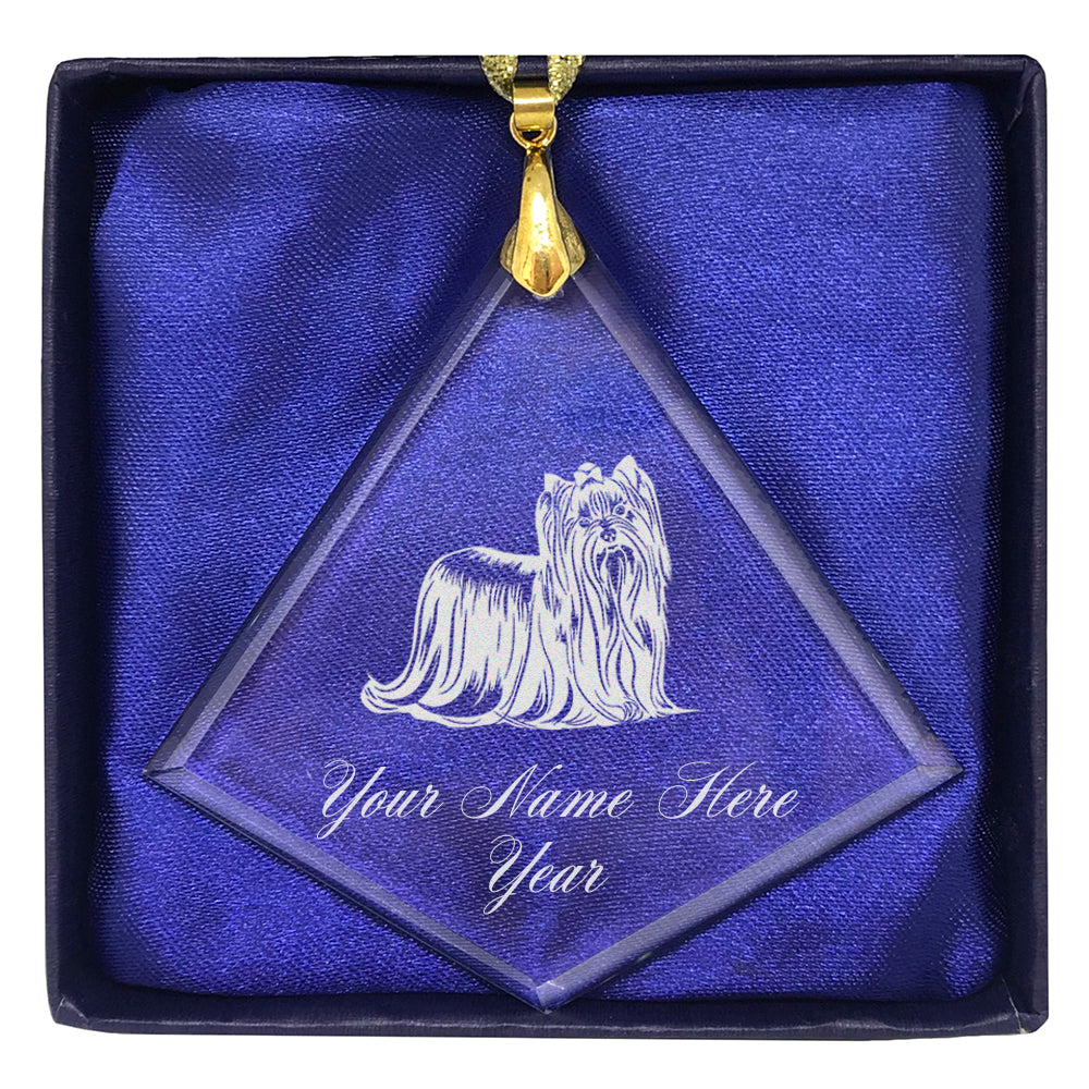 LaserGram Christmas Ornament, Yorkshire Terrier Dog, Personalized Engraving Included (Diamond Shape)
