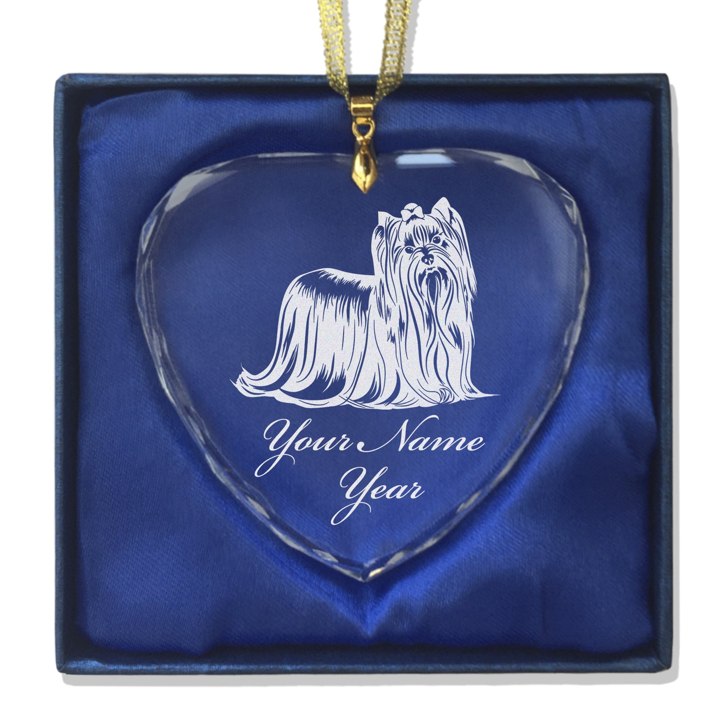 LaserGram Christmas Ornament, Yorkshire Terrier Dog, Personalized Engraving Included (Heart Shape)
