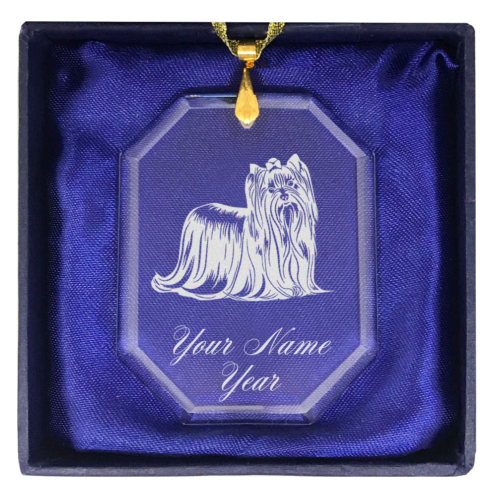 LaserGram Christmas Ornament, Yorkshire Terrier Dog, Personalized Engraving Included (Rectangle Shape)
