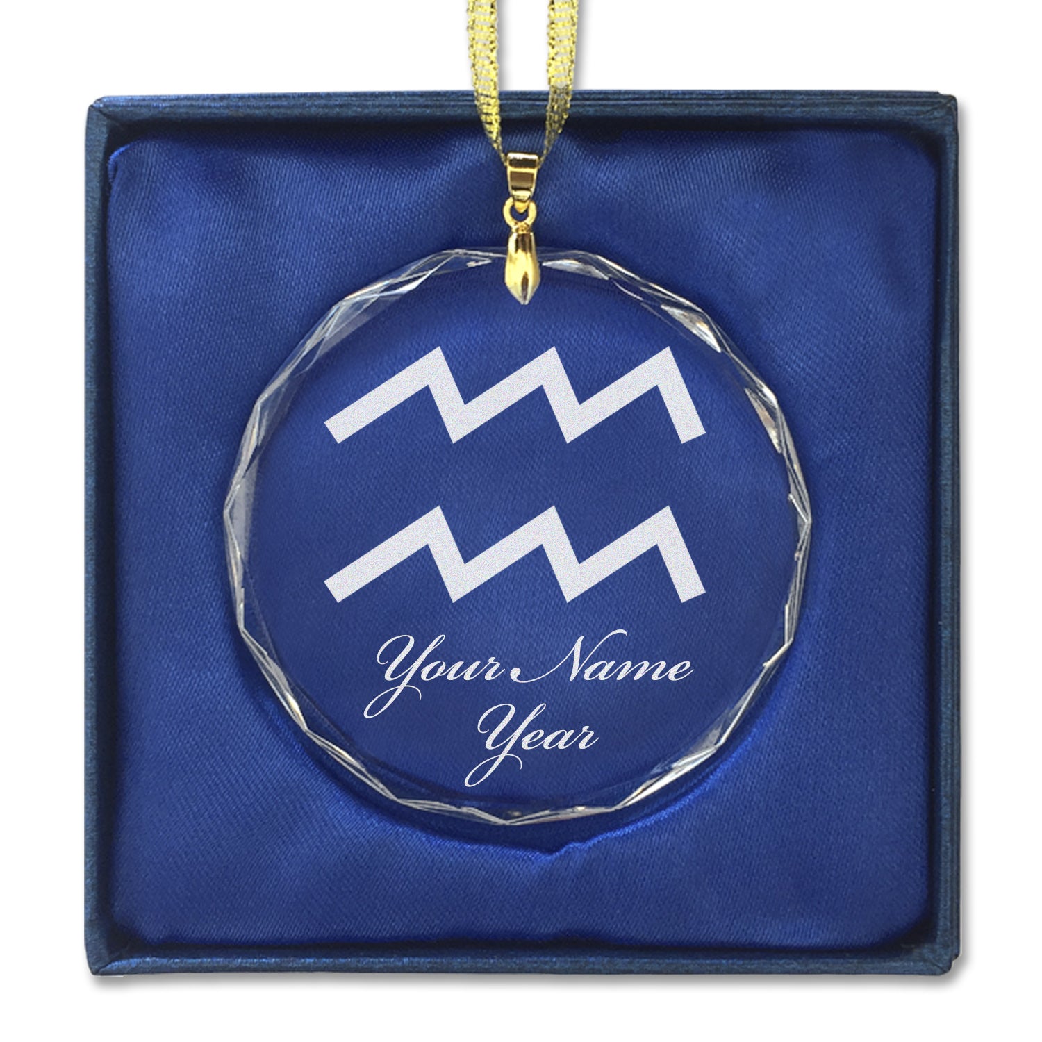 LaserGram Christmas Ornament, Zodiac Sign Aquarius, Personalized Engraving Included (Round Shape)