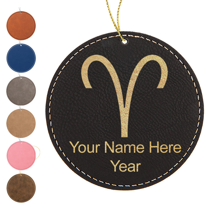 LaserGram Christmas Ornament, Zodiac Sign Aries, Personalized Engraving Included (Faux Leather, Round Shape)