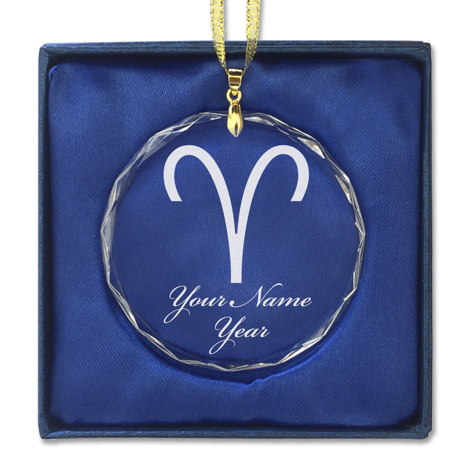 LaserGram Christmas Ornament, Zodiac Sign Aries, Personalized Engraving Included (Round Shape)