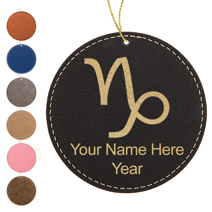 LaserGram Christmas Ornament, Zodiac Sign Capricorn, Personalized Engraving Included (Faux Leather, Round Shape)