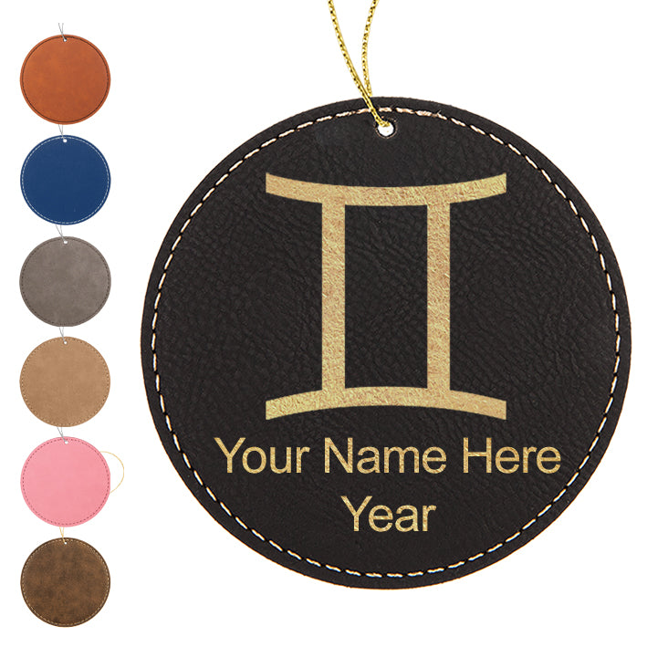 LaserGram Christmas Ornament, Zodiac Sign Gemini, Personalized Engraving Included (Faux Leather, Round Shape)