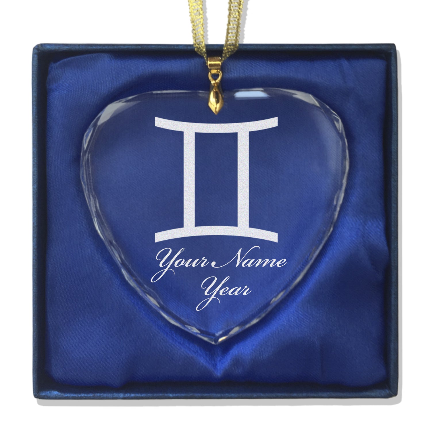 LaserGram Christmas Ornament, Zodiac Sign Gemini, Personalized Engraving Included (Heart Shape)