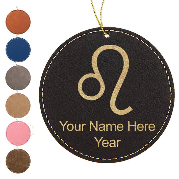 LaserGram Christmas Ornament, Zodiac Sign Leo, Personalized Engraving Included (Faux Leather, Round Shape)