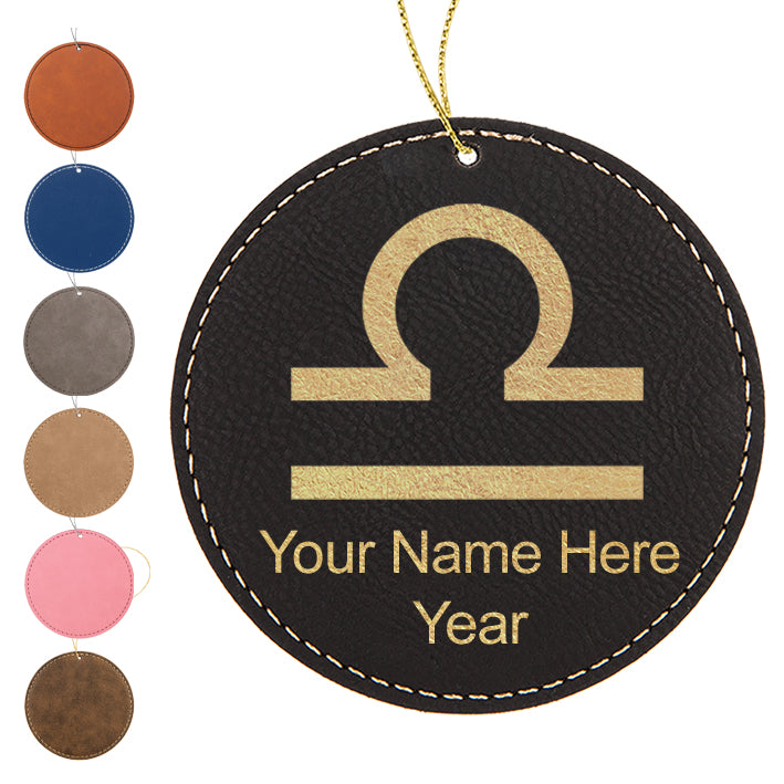 LaserGram Christmas Ornament, Zodiac Sign Libra, Personalized Engraving Included (Faux Leather, Round Shape)