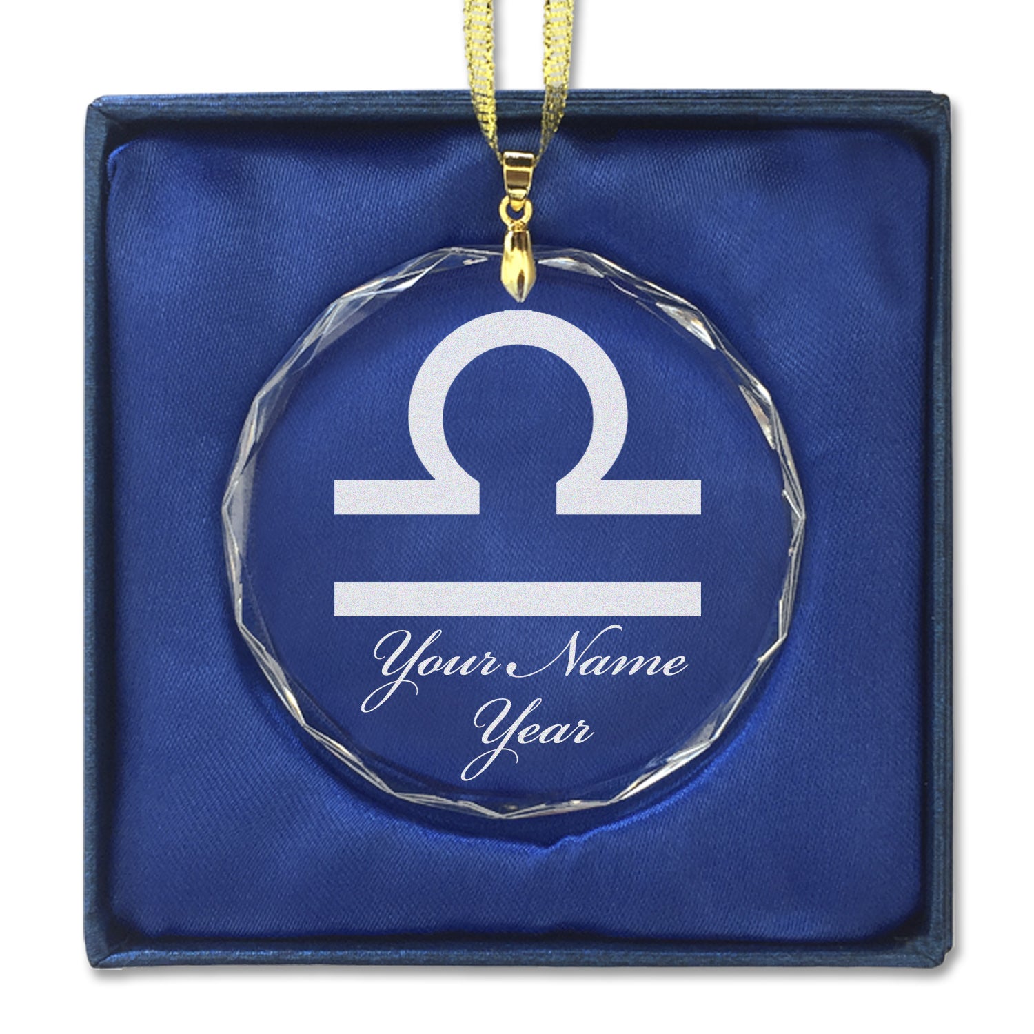 LaserGram Christmas Ornament, Zodiac Sign Libra, Personalized Engraving Included (Round Shape)