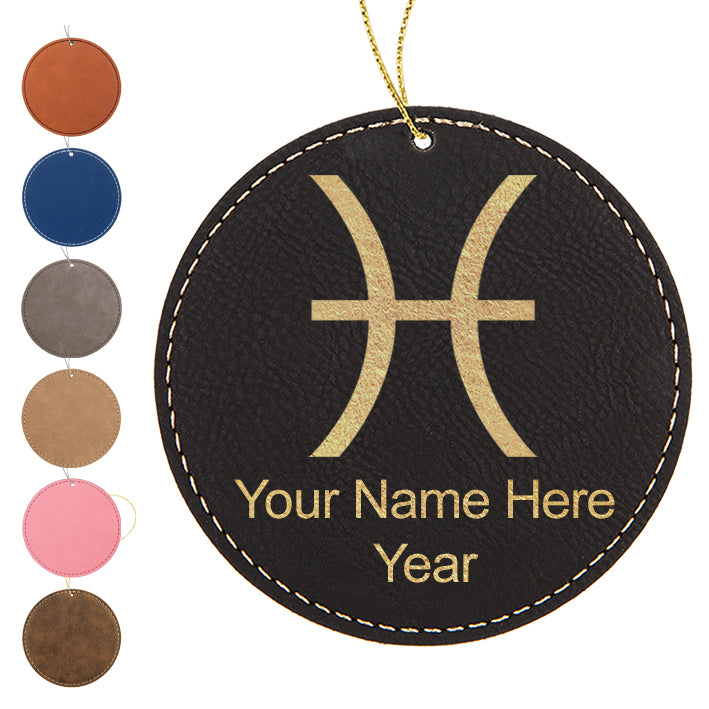 LaserGram Christmas Ornament, Zodiac Sign Pisces, Personalized Engraving Included (Faux Leather, Round Shape)