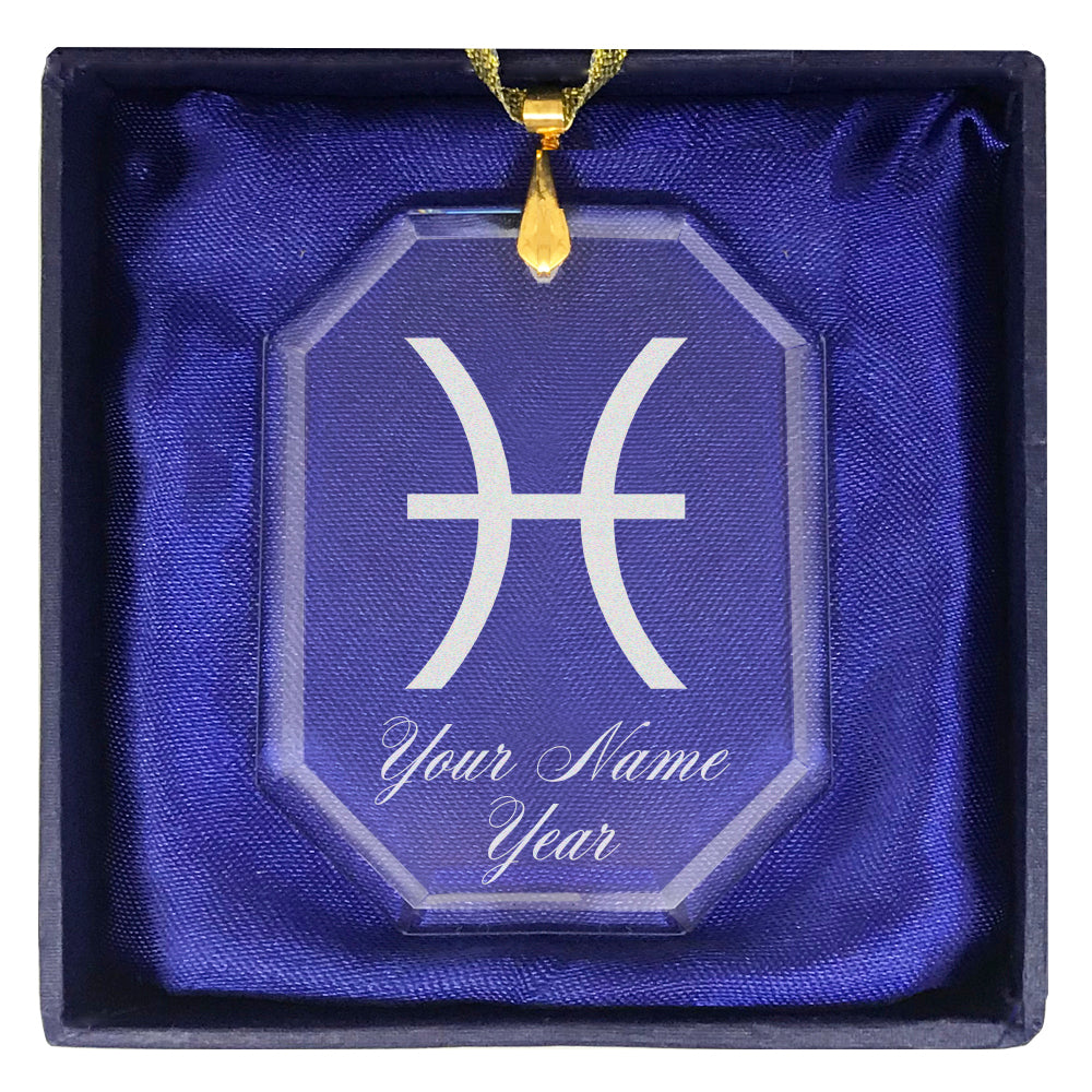 LaserGram Christmas Ornament, Zodiac Sign Pisces, Personalized Engraving Included (Rectangle Shape)
