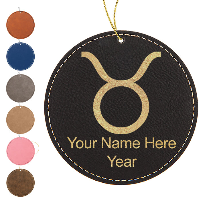 LaserGram Christmas Ornament, Zodiac Sign Taurus, Personalized Engraving Included (Faux Leather, Round Shape)