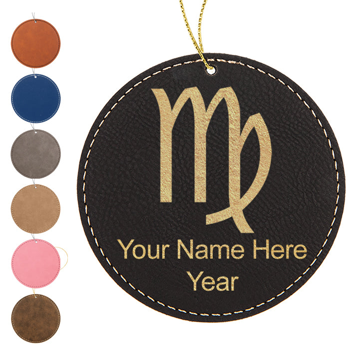 LaserGram Christmas Ornament, Zodiac Sign Virgo, Personalized Engraving Included (Faux Leather, Round Shape)
