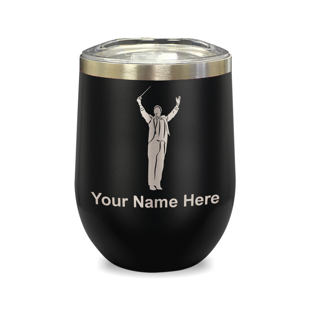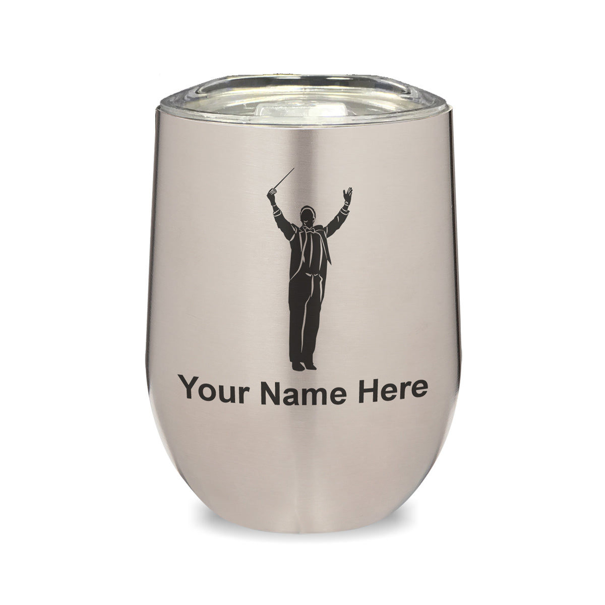 LaserGram Double Wall Stainless Steel Wine Glass, Band Director, Personalized Engraving Included