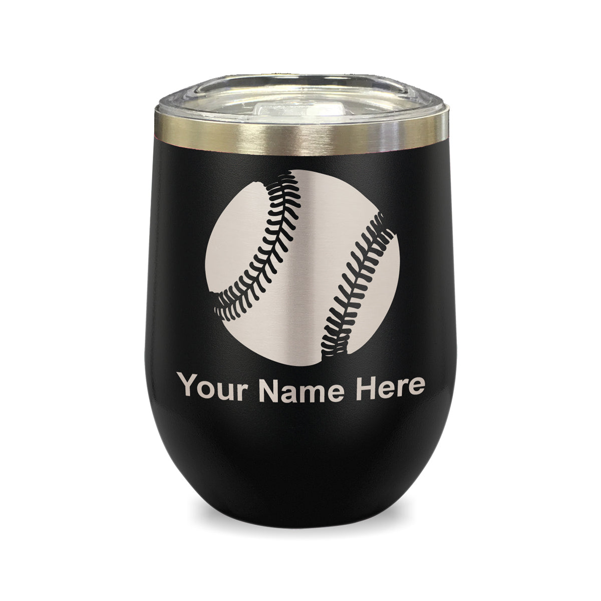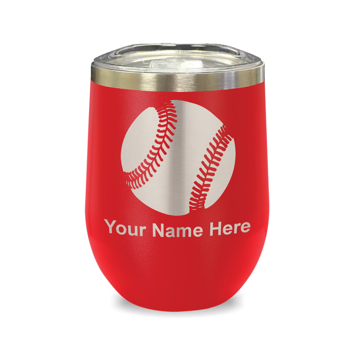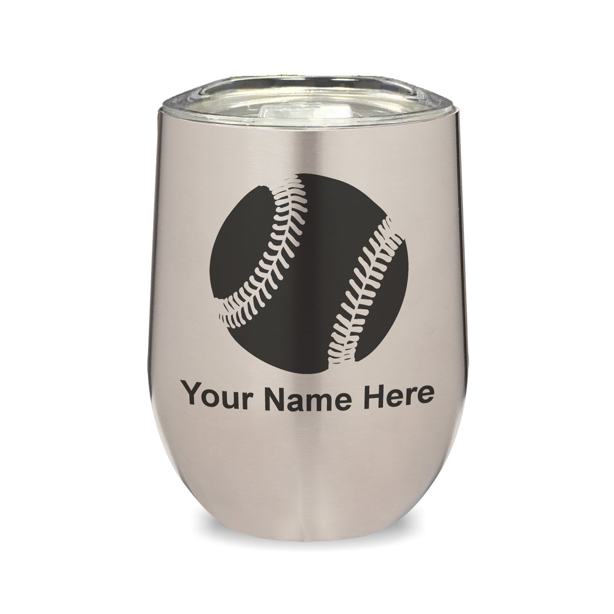 LaserGram Double Wall Stainless Steel Wine Glass, Baseball Ball, Personalized Engraving Included