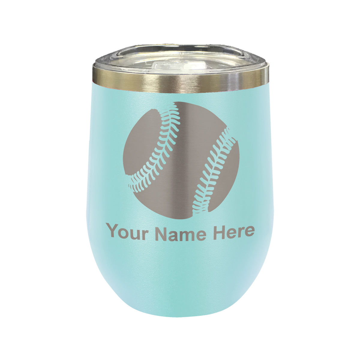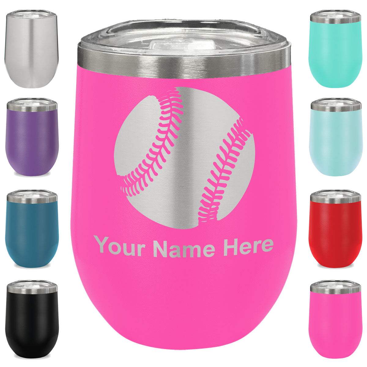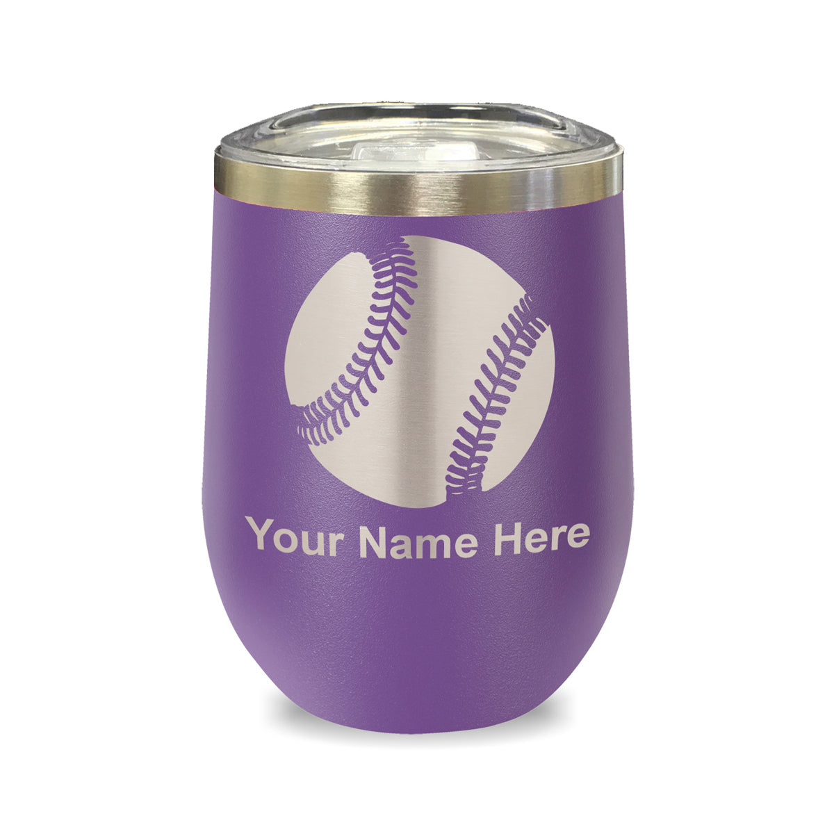 LaserGram Double Wall Stainless Steel Wine Glass, Baseball Ball, Personalized Engraving Included
