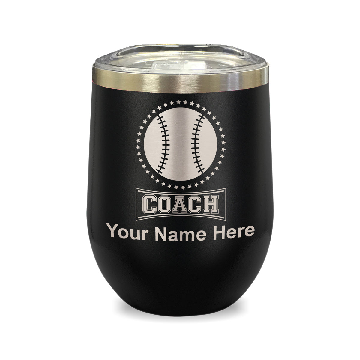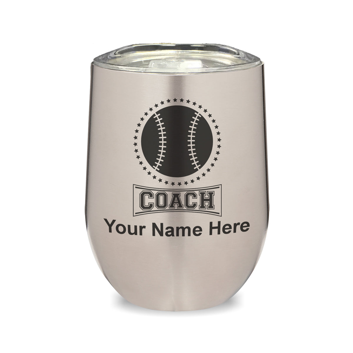 LaserGram Double Wall Stainless Steel Wine Glass, Baseball Coach, Personalized Engraving Included