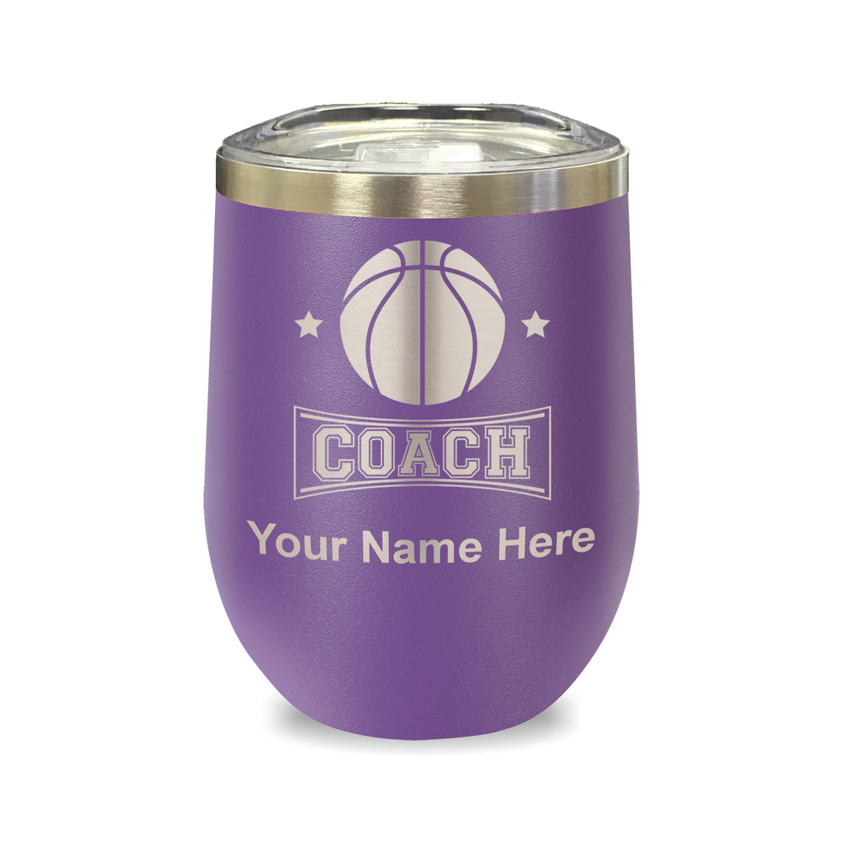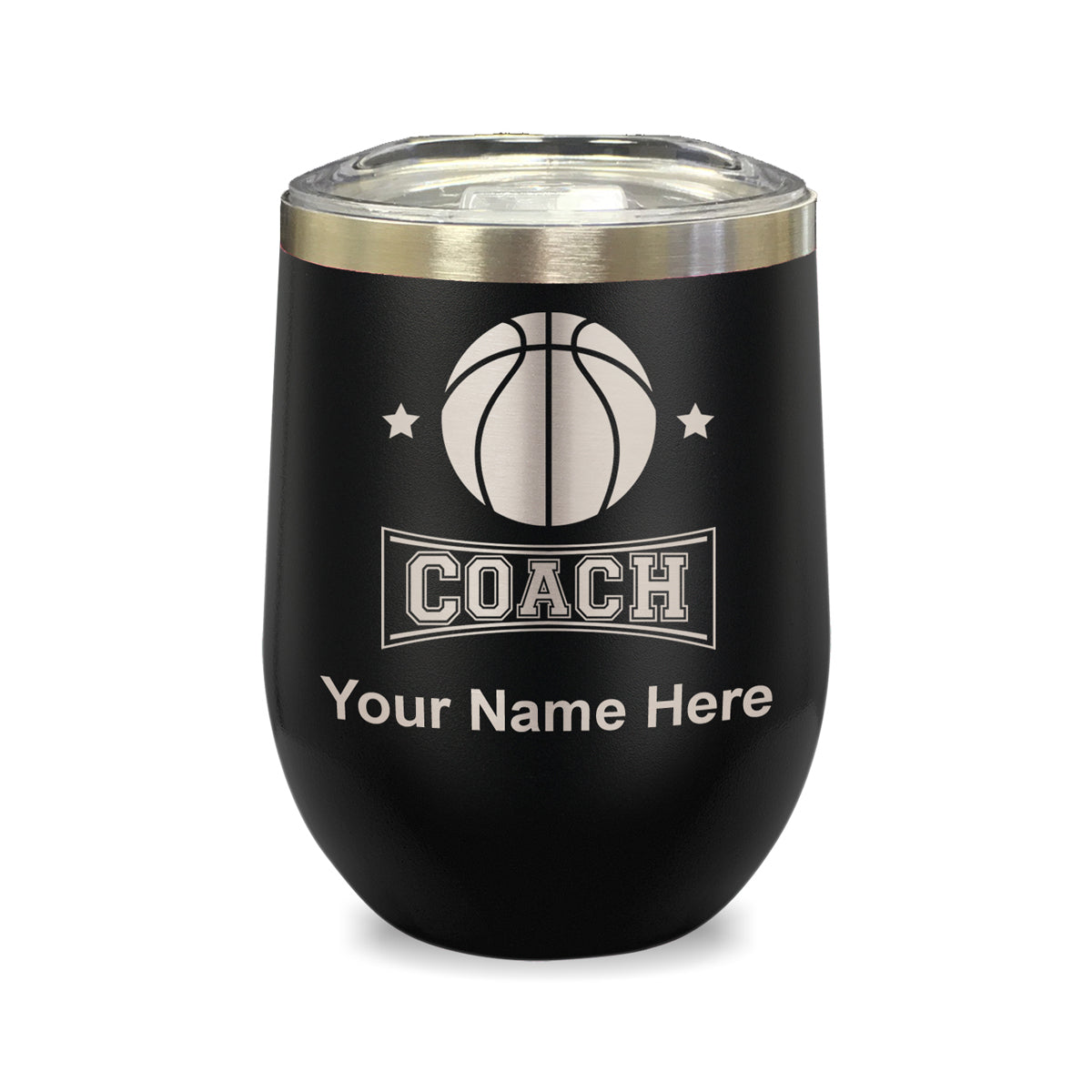 LaserGram Double Wall Stainless Steel Wine Glass, Basketball Coach, Personalized Engraving Included