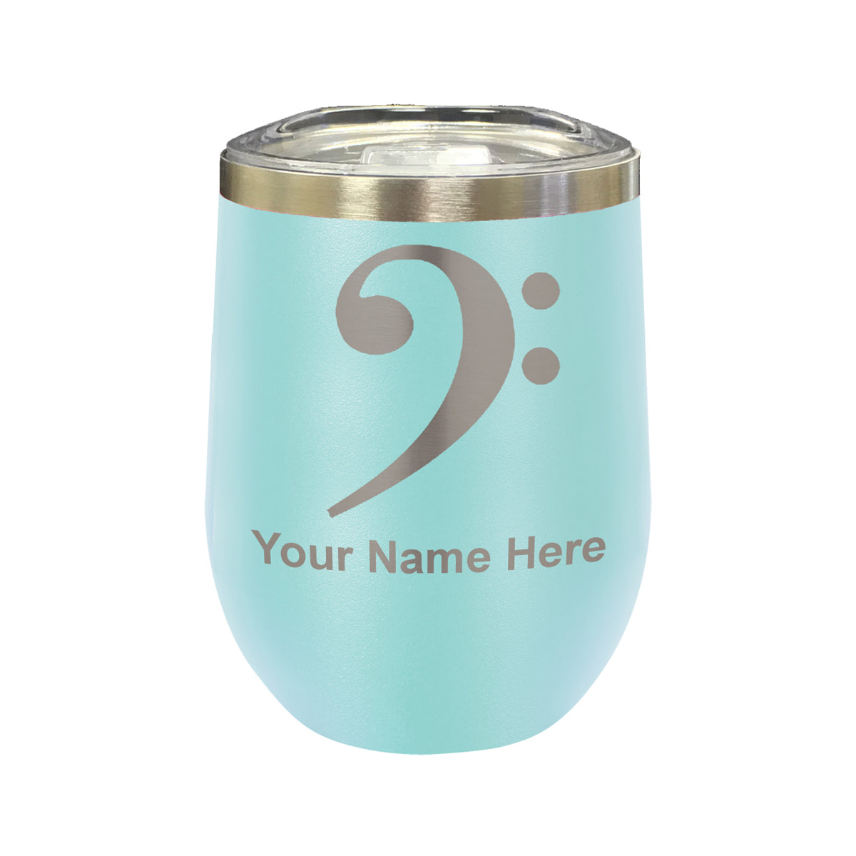 LaserGram Double Wall Stainless Steel Wine Glass, Bass Clef, Personalized Engraving Included