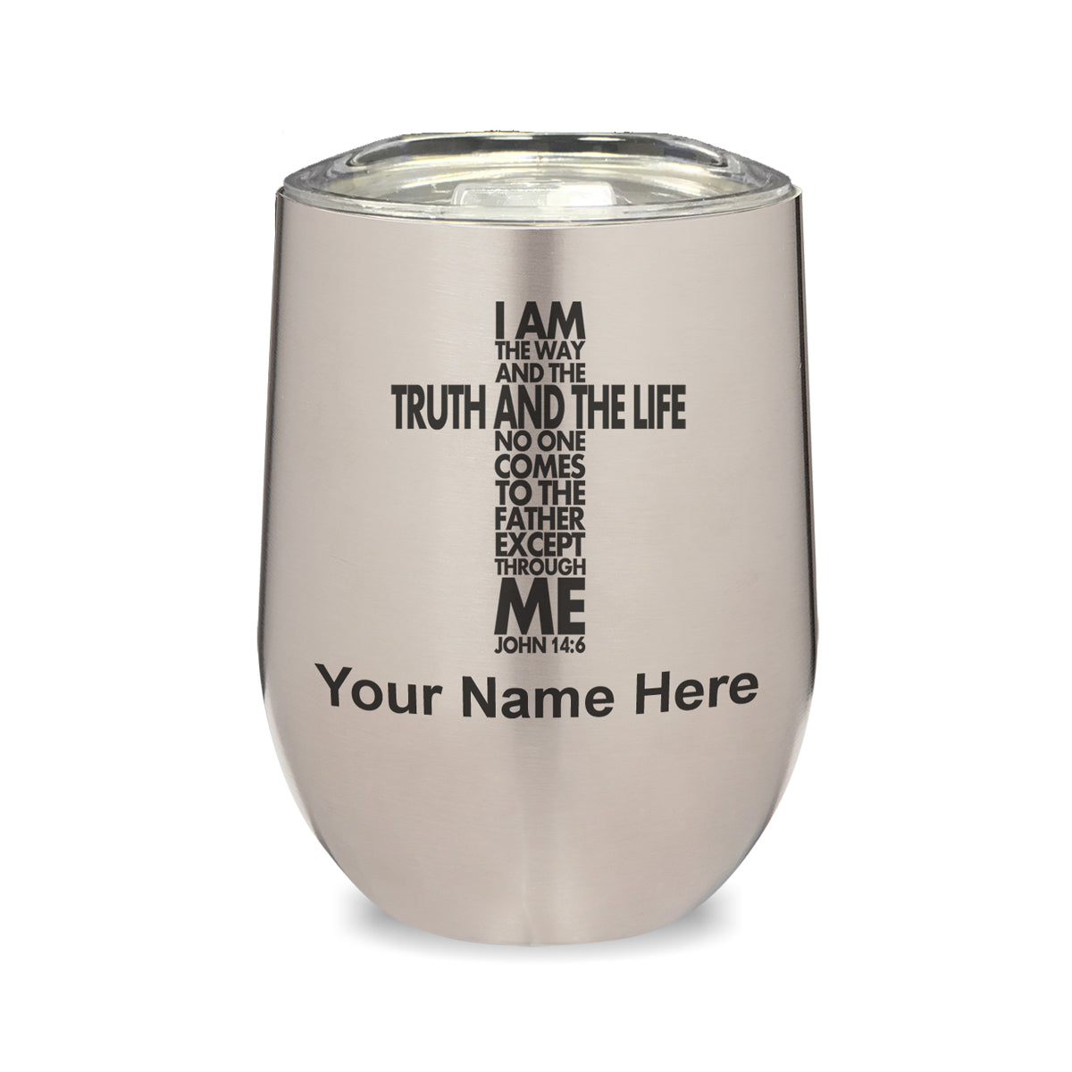 LaserGram Double Wall Stainless Steel Wine Glass, Bible Verse John 14-6, Personalized Engraving Included