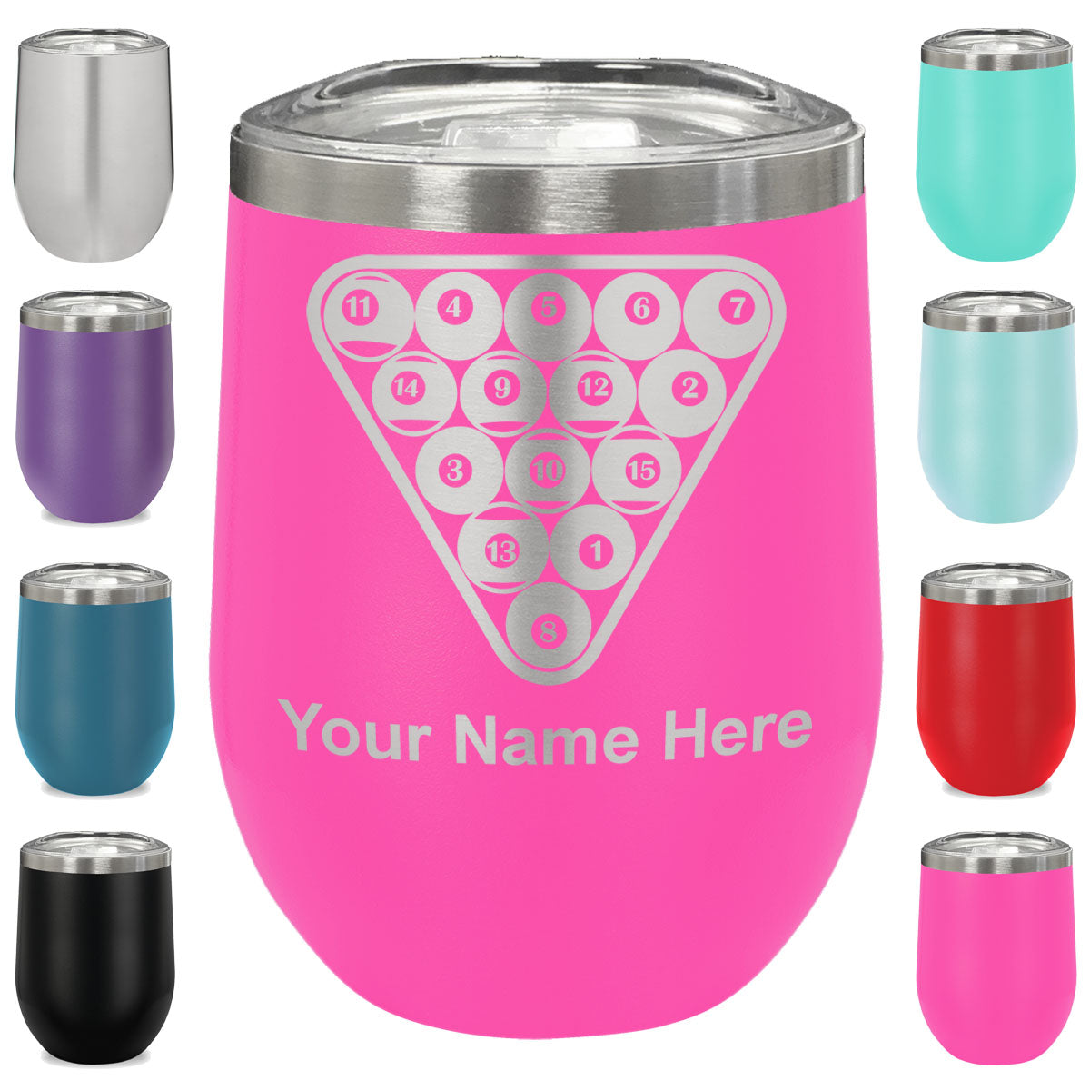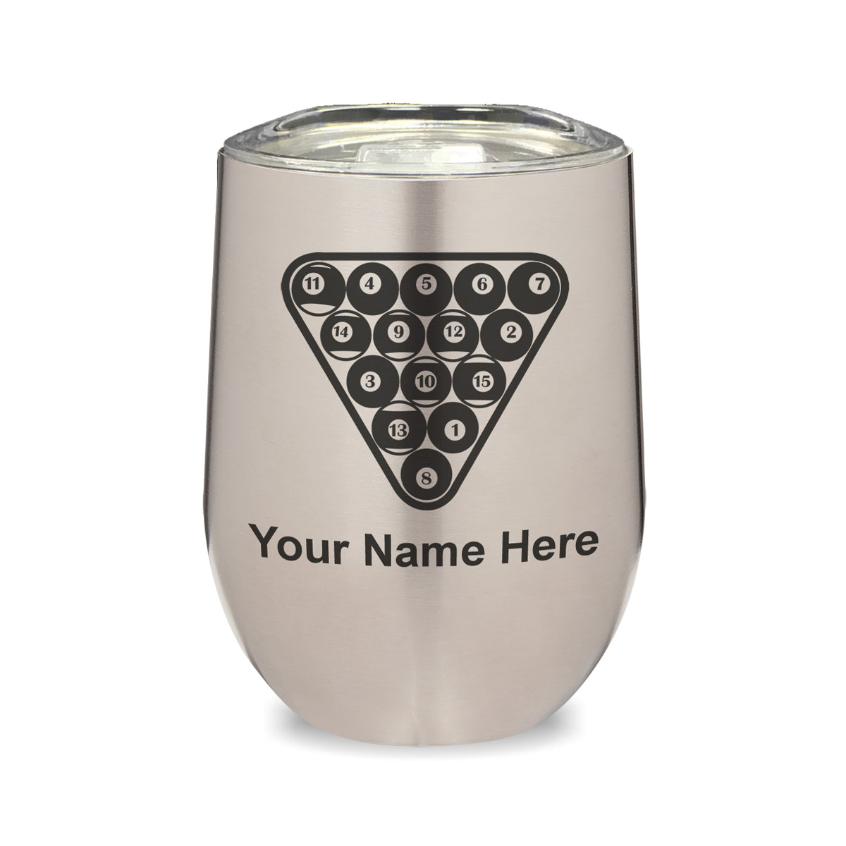 LaserGram Double Wall Stainless Steel Wine Glass, Billiard Balls, Personalized Engraving Included