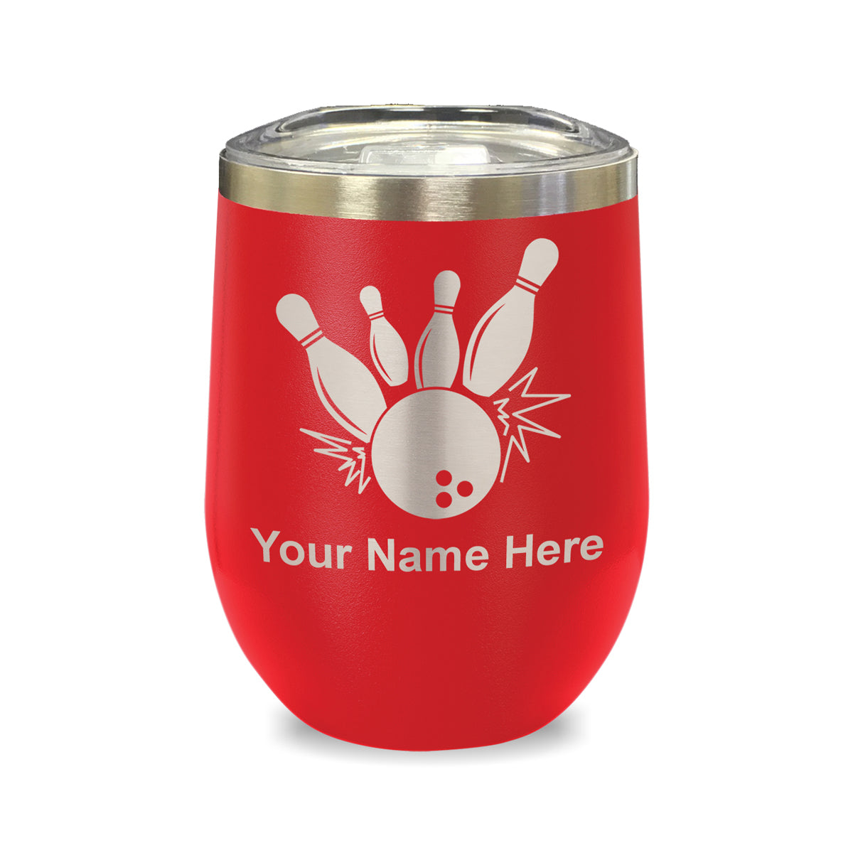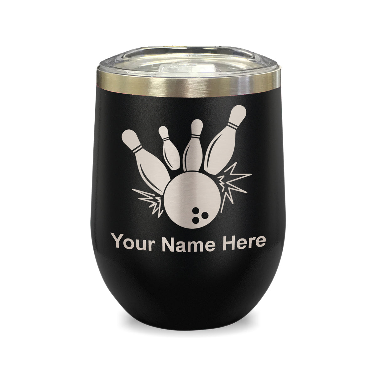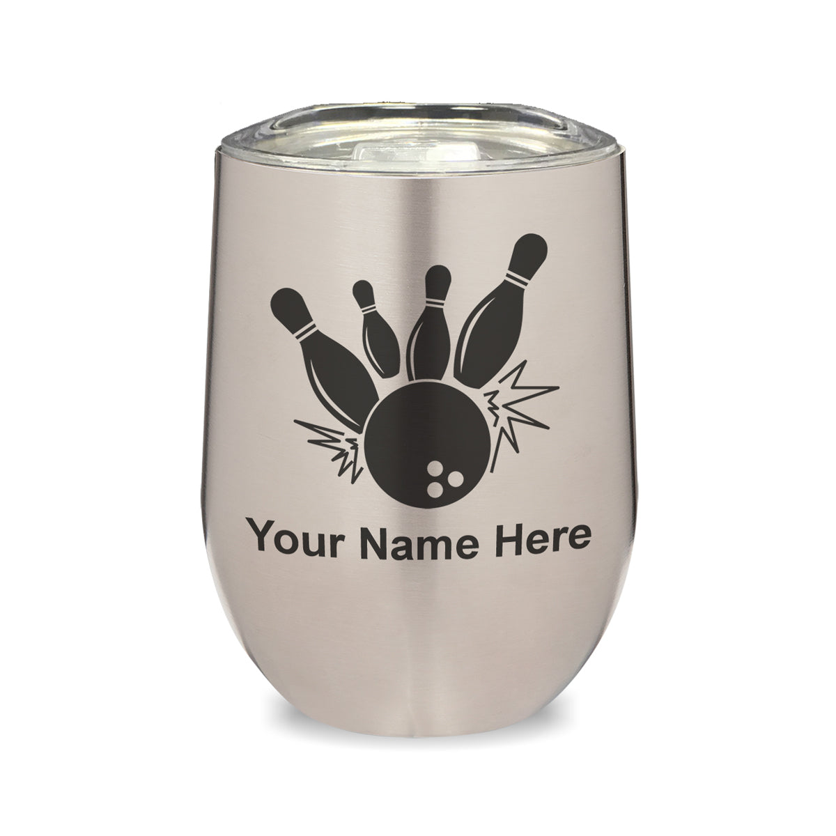 LaserGram Double Wall Stainless Steel Wine Glass, Bowling Ball and Pins, Personalized Engraving Included