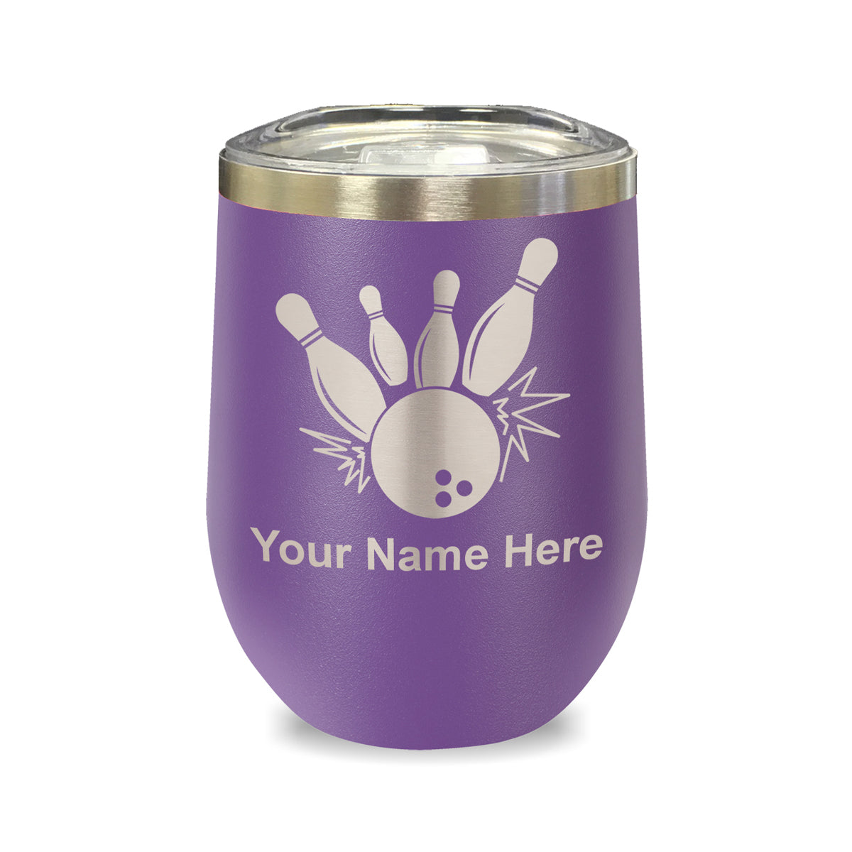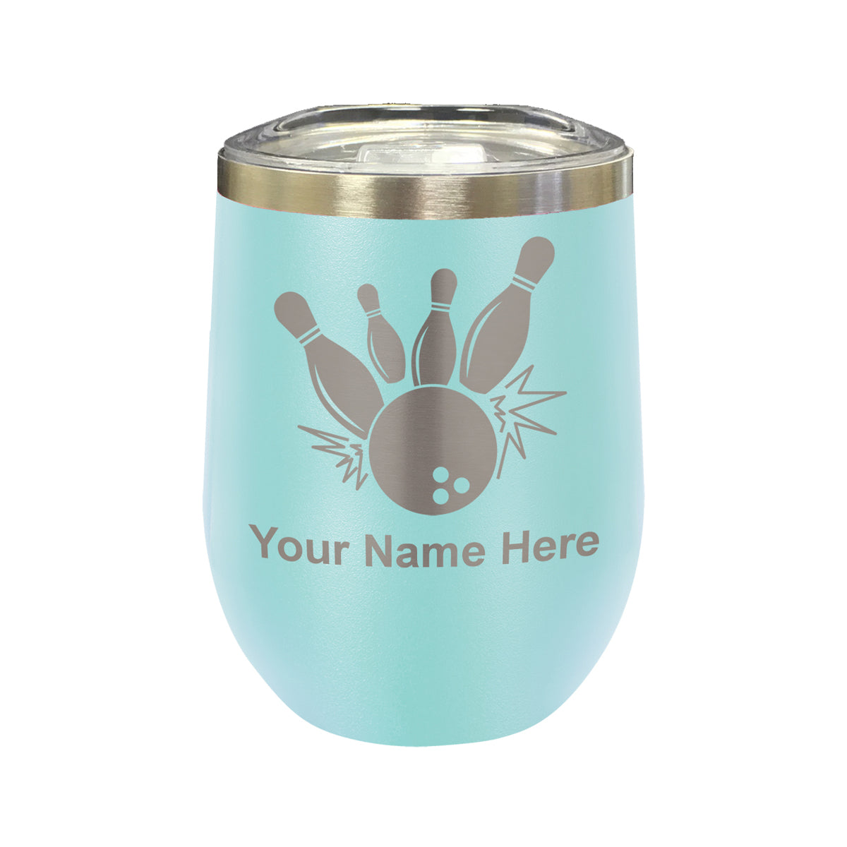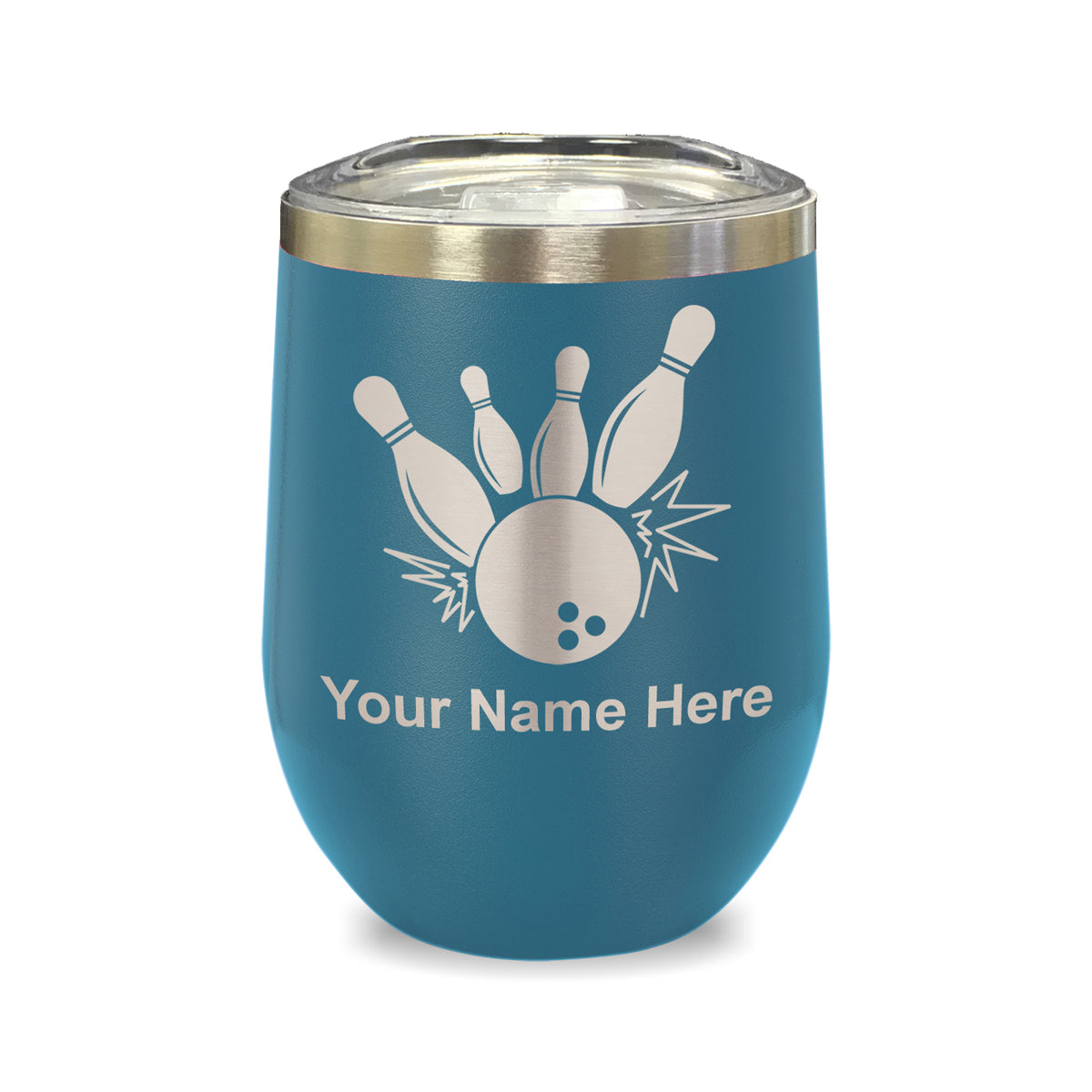 LaserGram Double Wall Stainless Steel Wine Glass, Bowling Ball and Pins, Personalized Engraving Included
