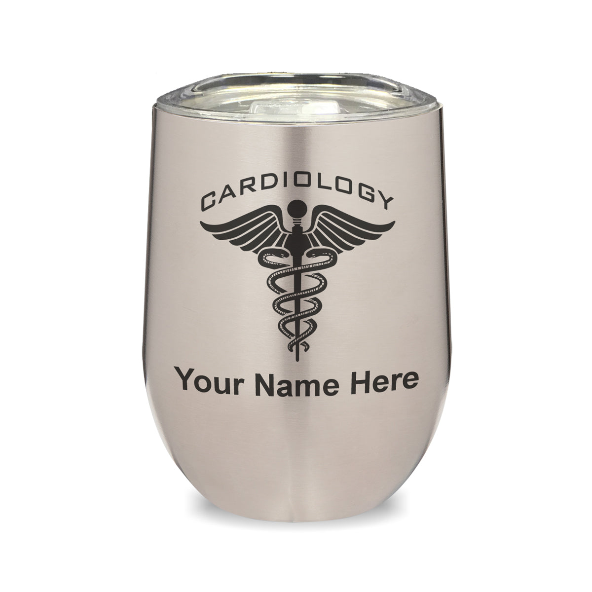 LaserGram Double Wall Stainless Steel Wine Glass, Cardiology, Personalized Engraving Included