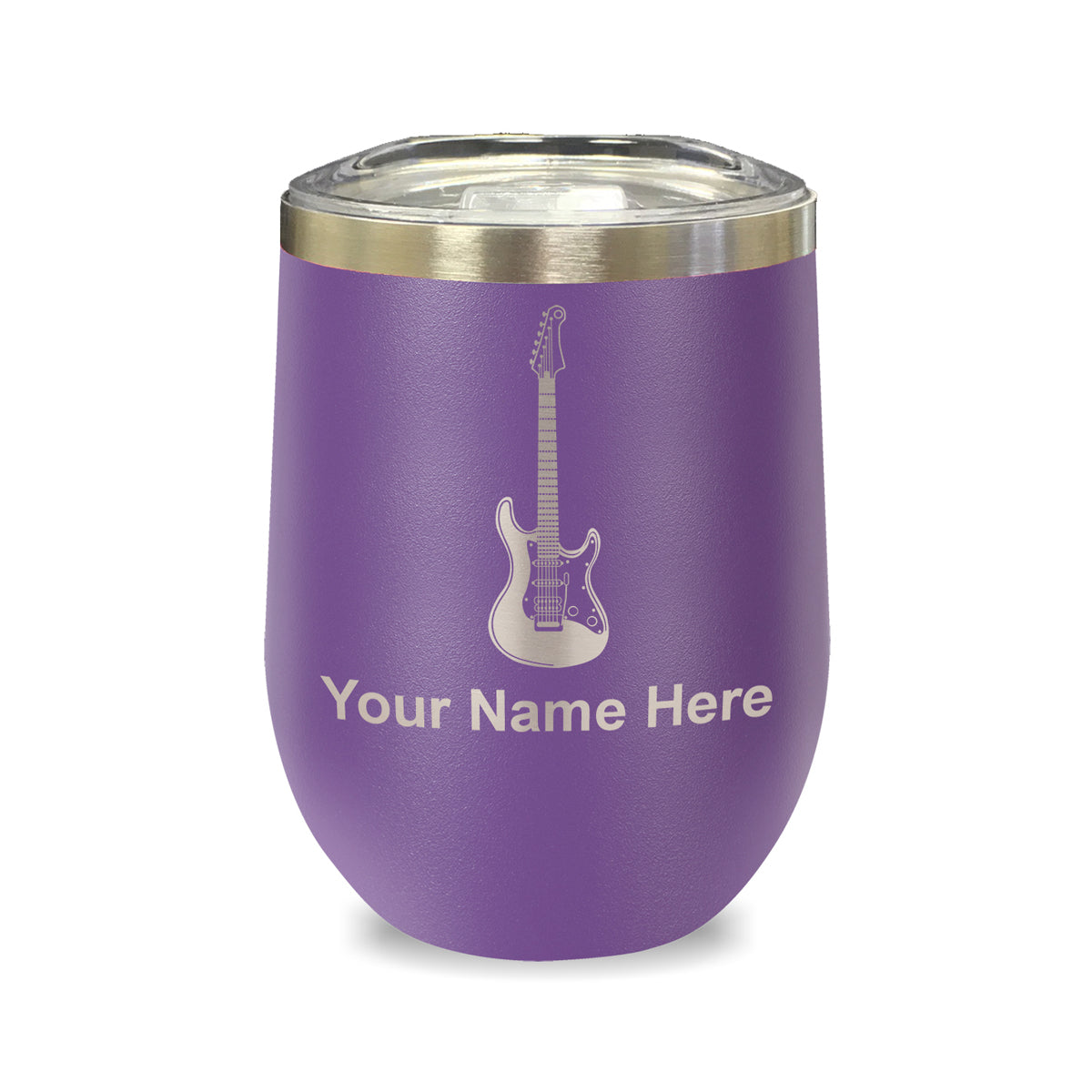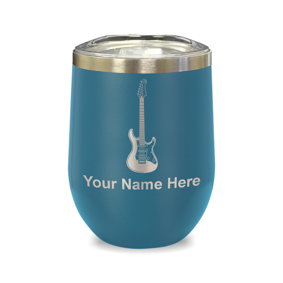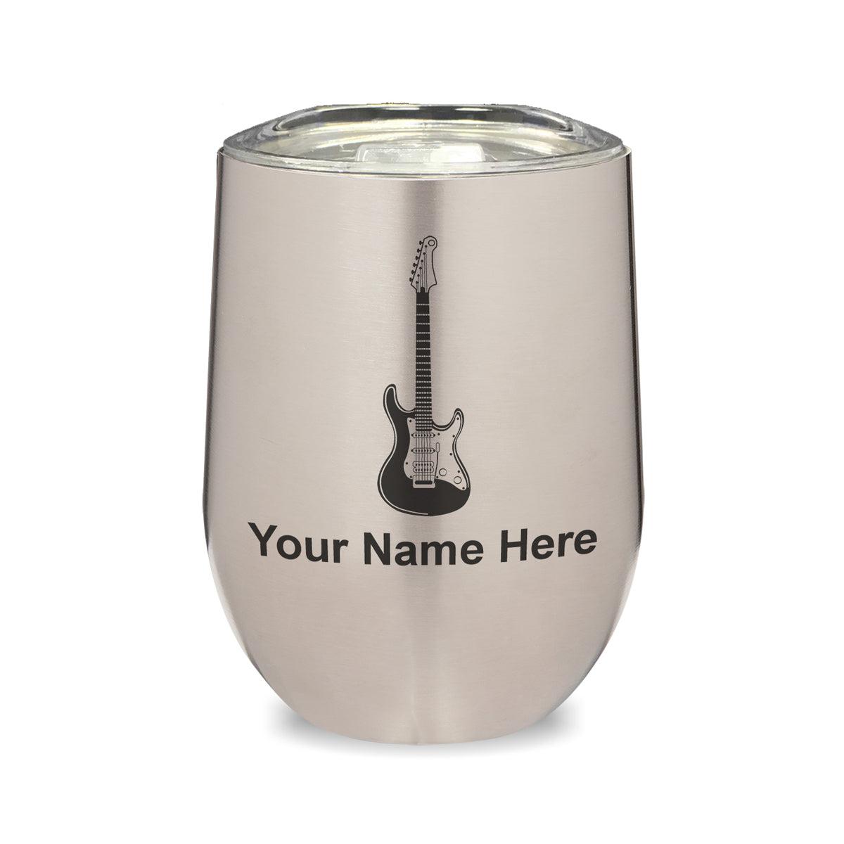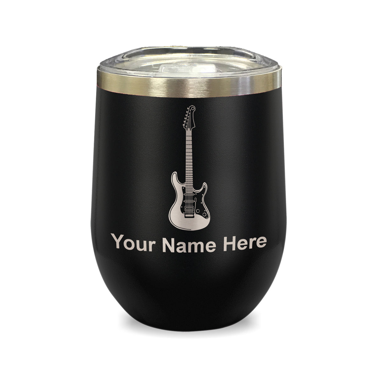 LaserGram Double Wall Stainless Steel Wine Glass, Electric Guitar, Personalized Engraving Included