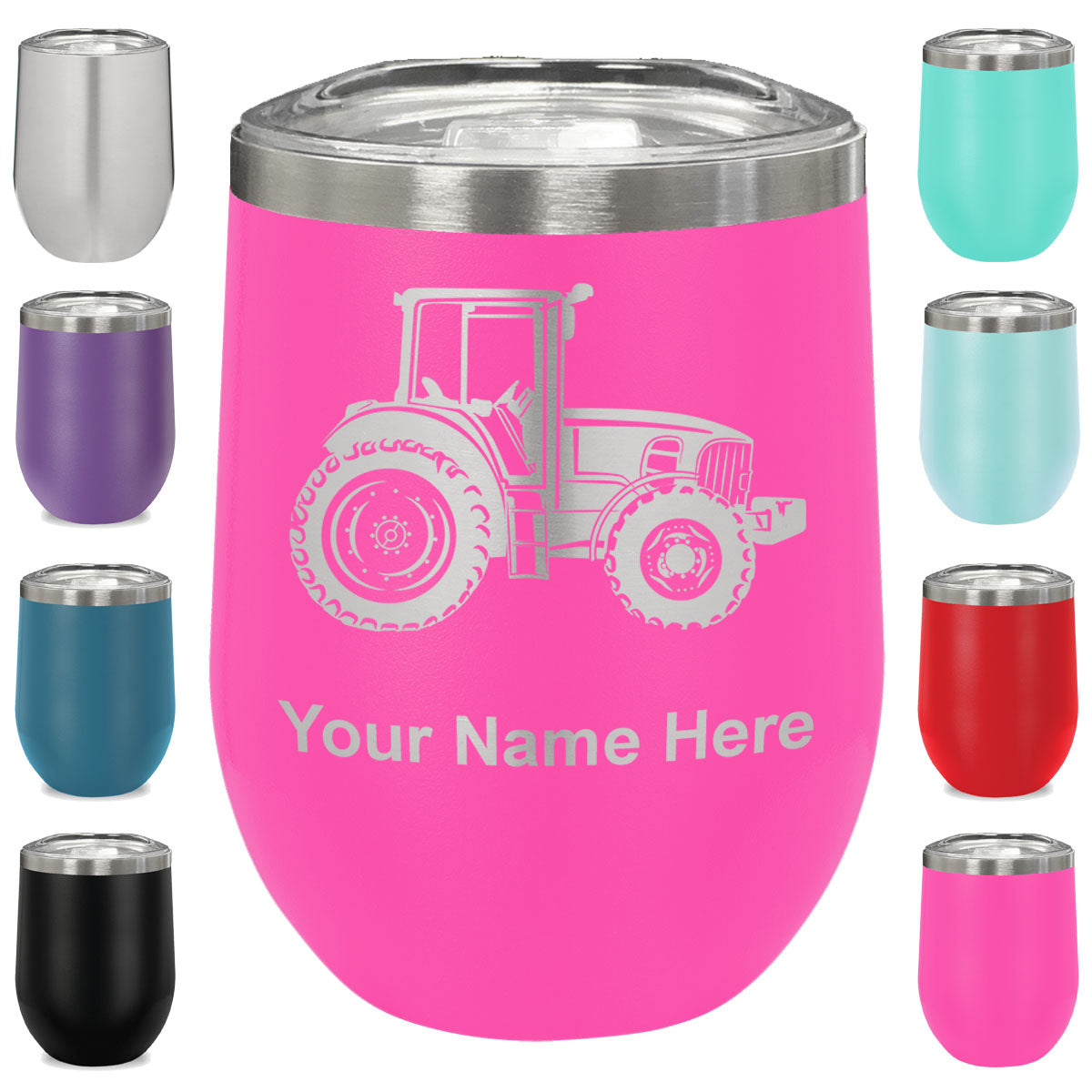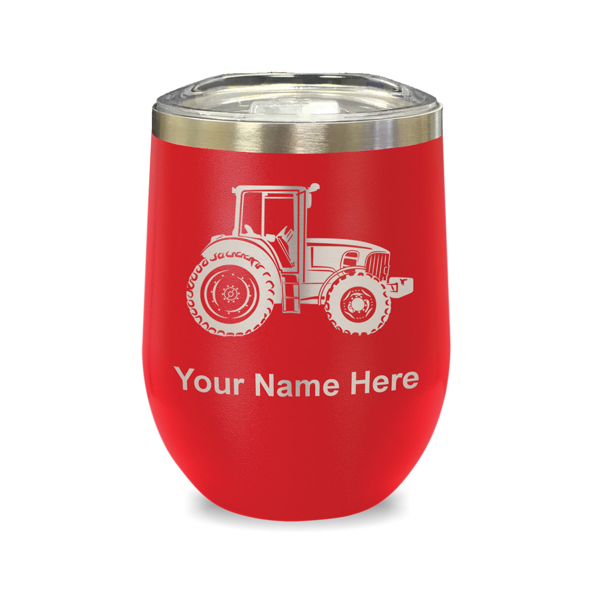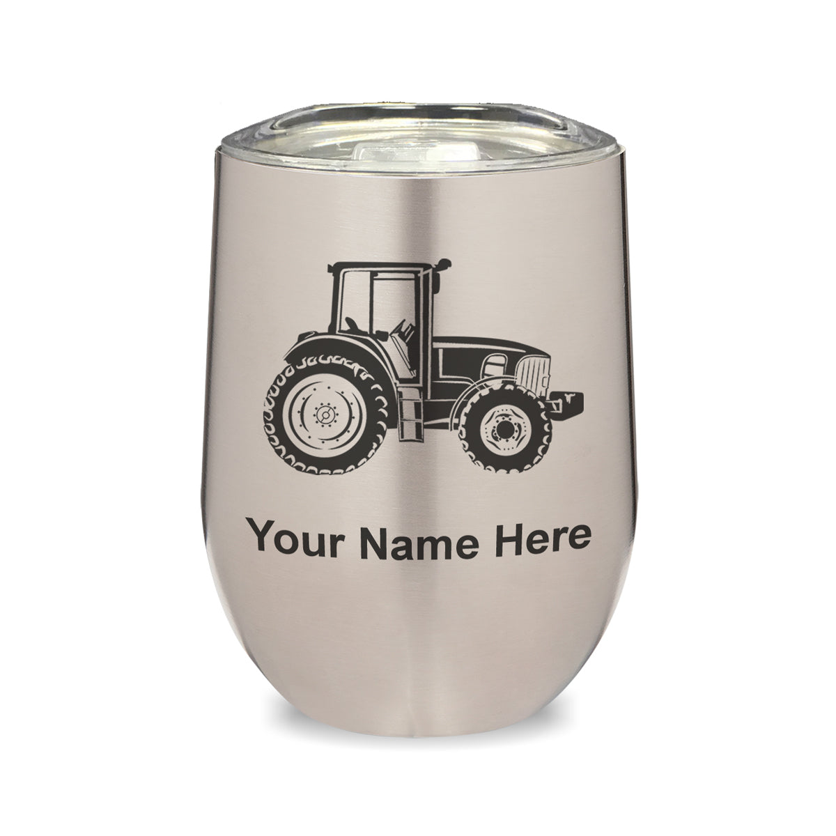 LaserGram Double Wall Stainless Steel Wine Glass, Farm Tractor, Personalized Engraving Included