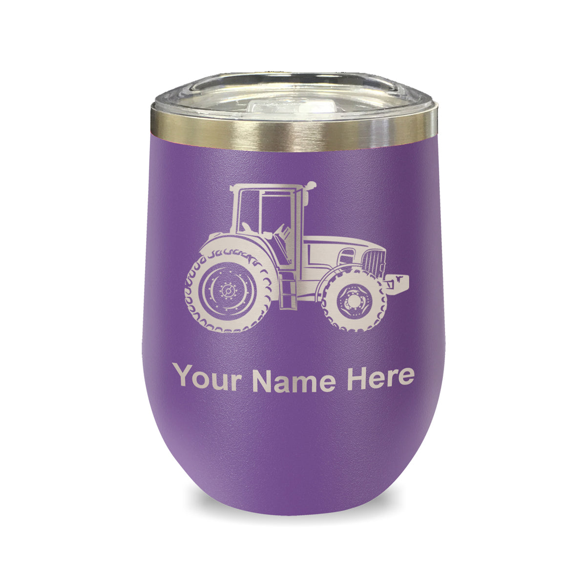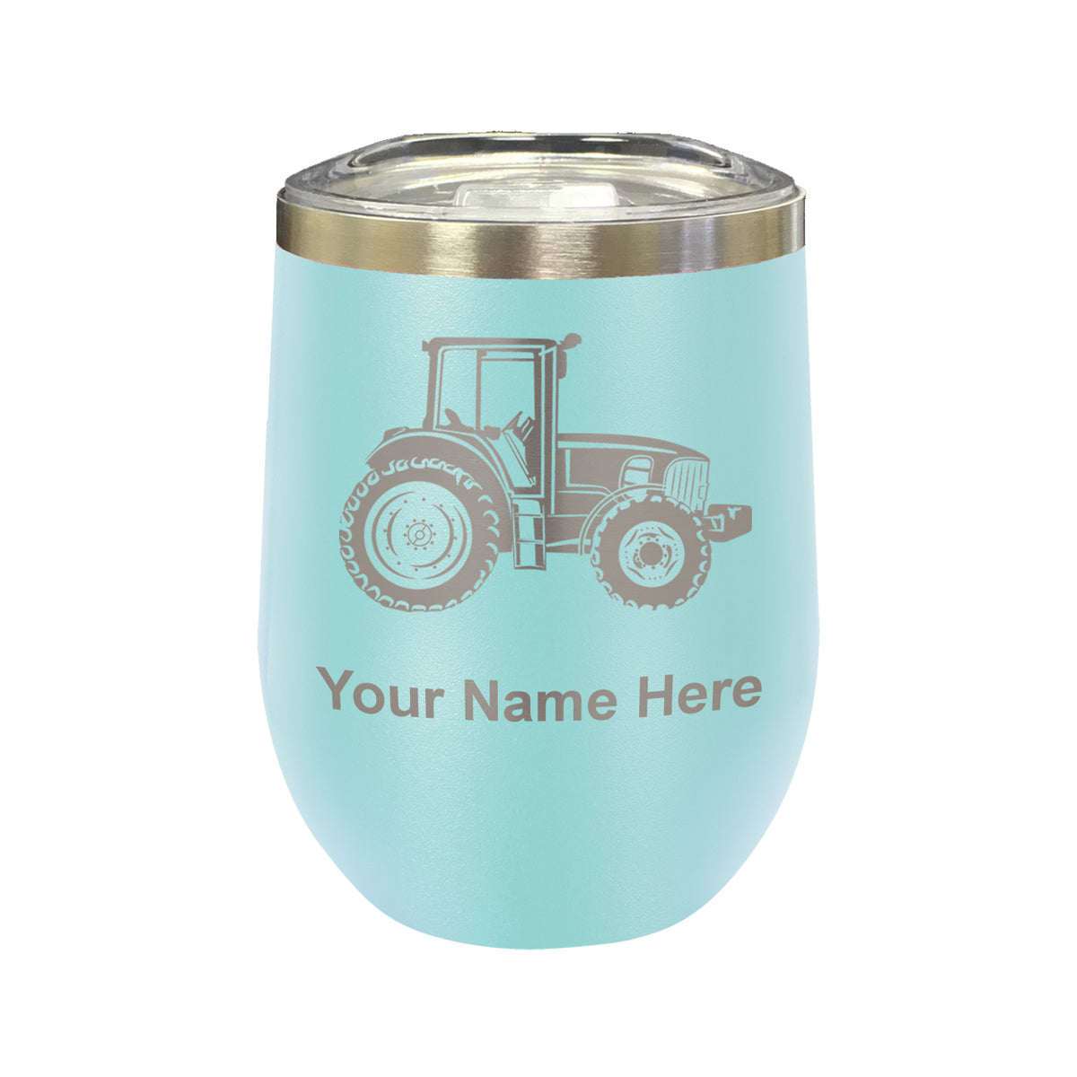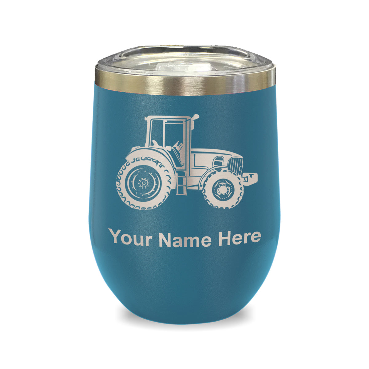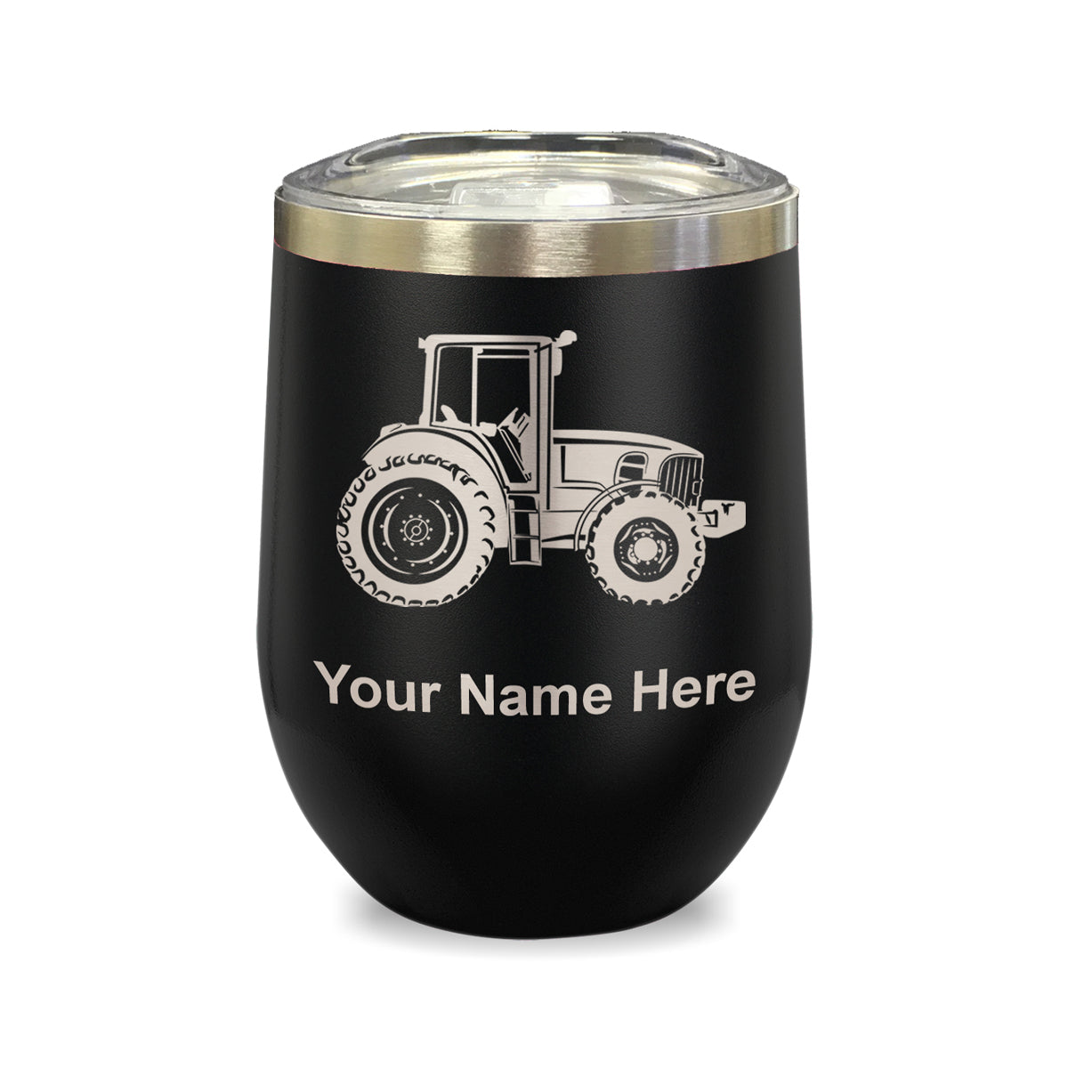 LaserGram Double Wall Stainless Steel Wine Glass, Farm Tractor, Personalized Engraving Included