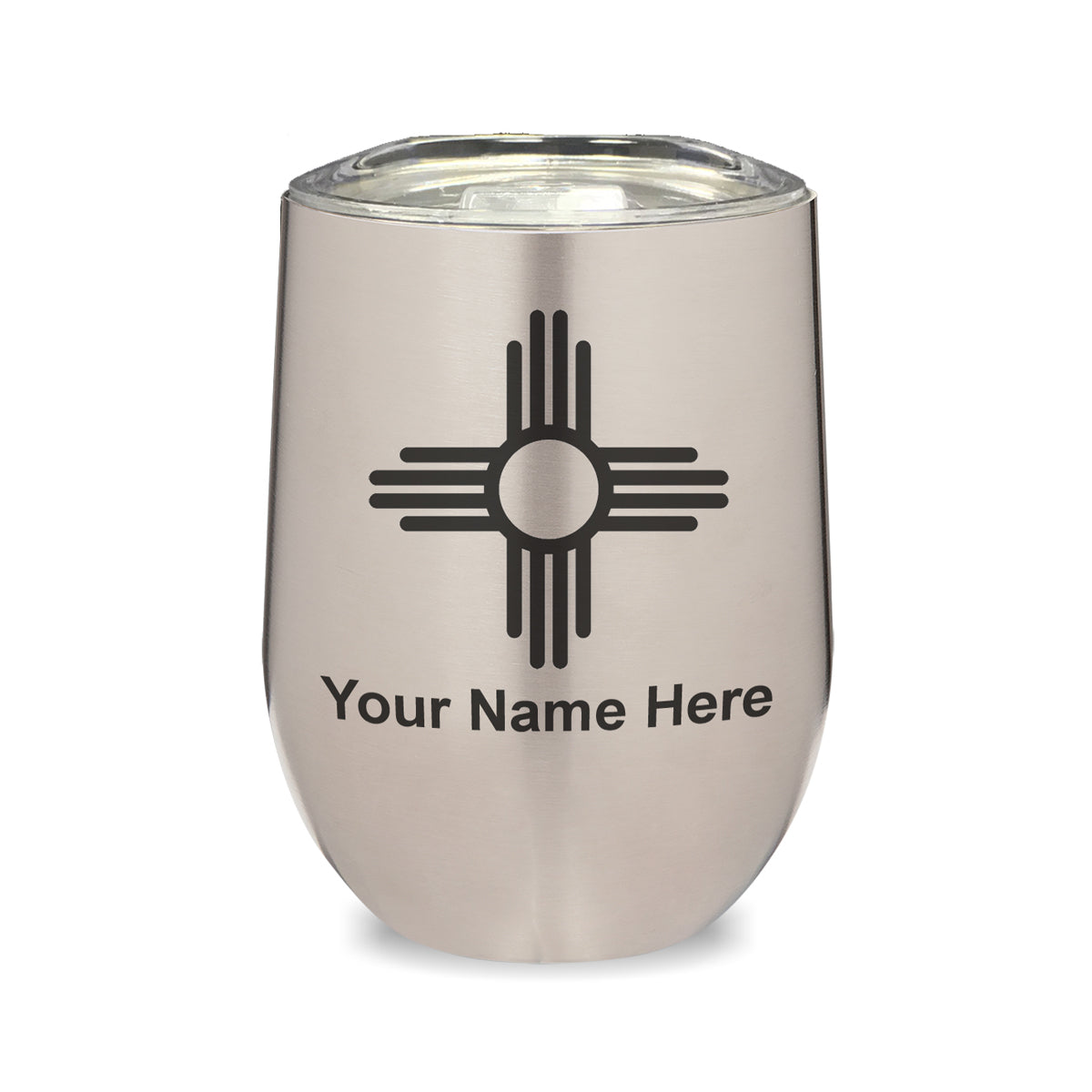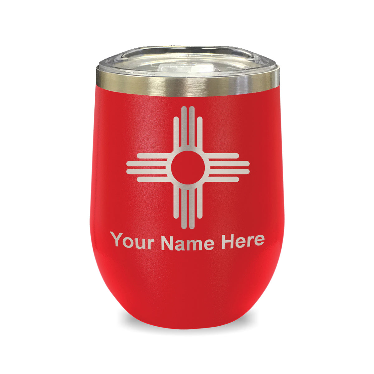 LaserGram Double Wall Stainless Steel Wine Glass, Flag of New Mexico, Personalized Engraving Included