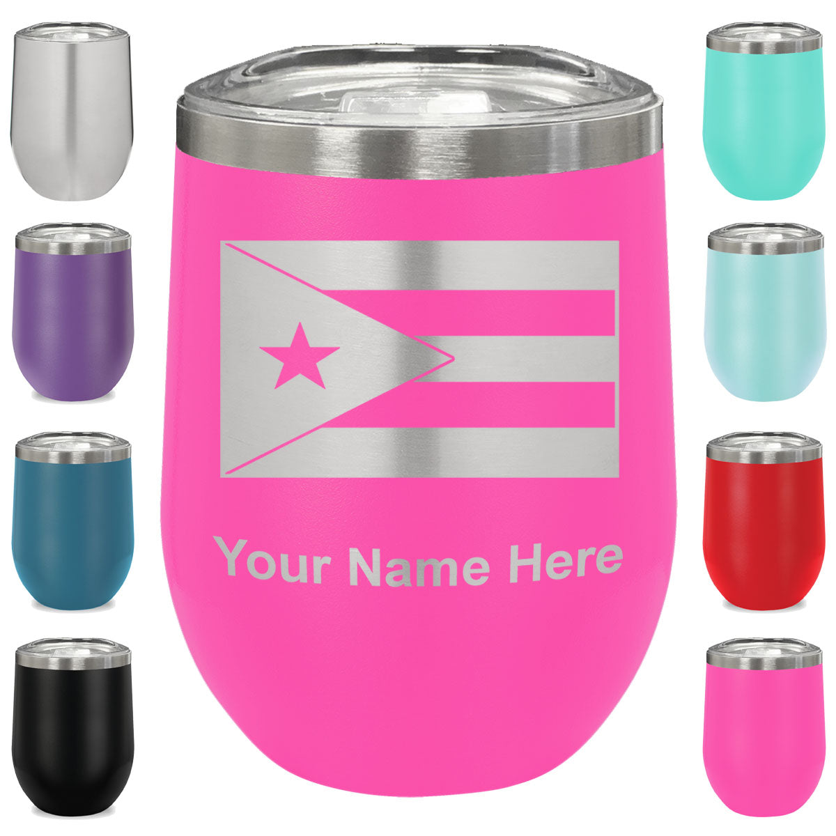 LaserGram Double Wall Stainless Steel Wine Glass, Flag of Puerto Rico, Personalized Engraving Included