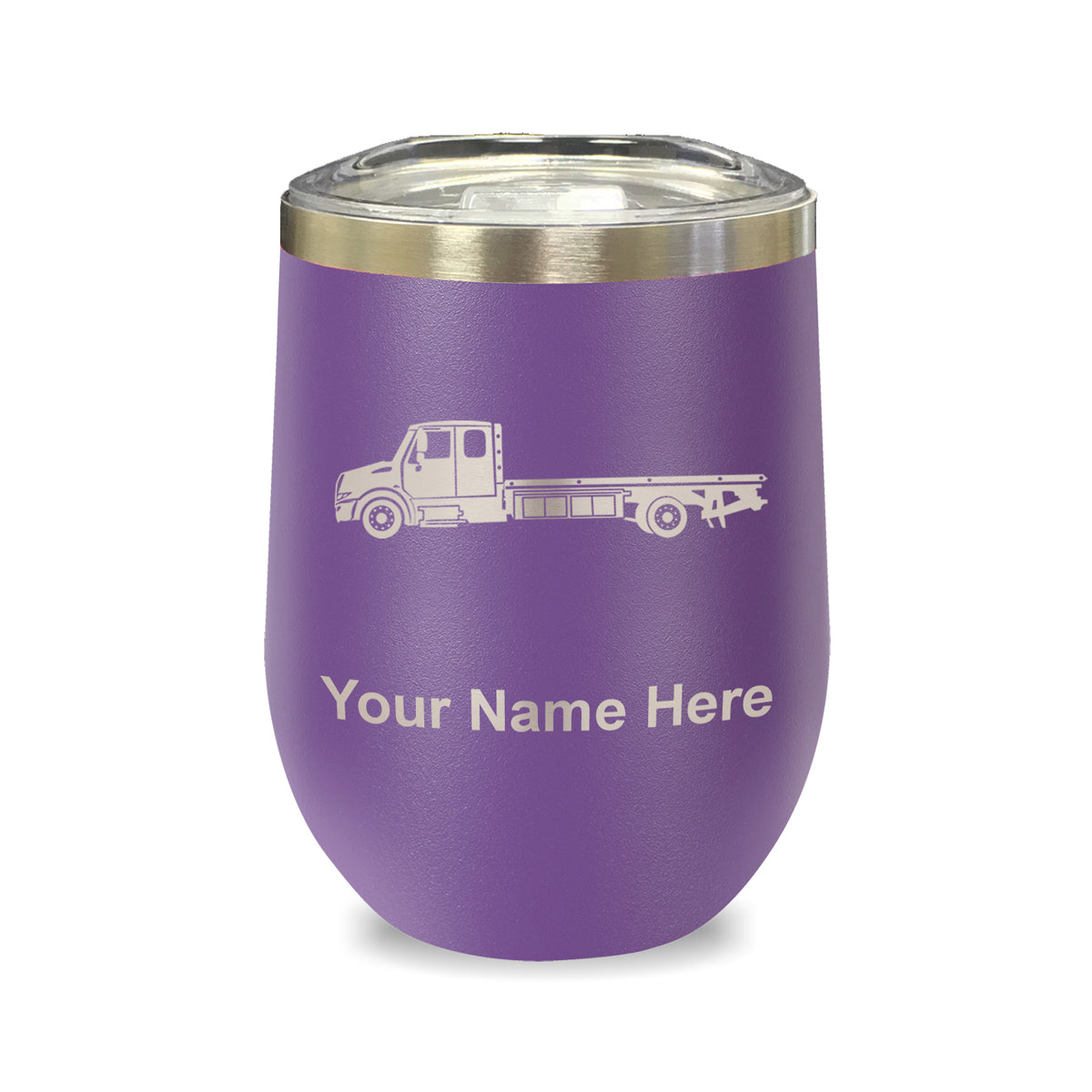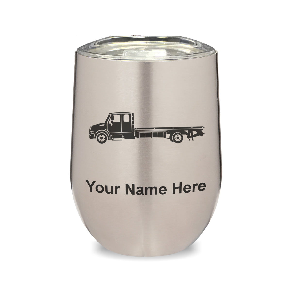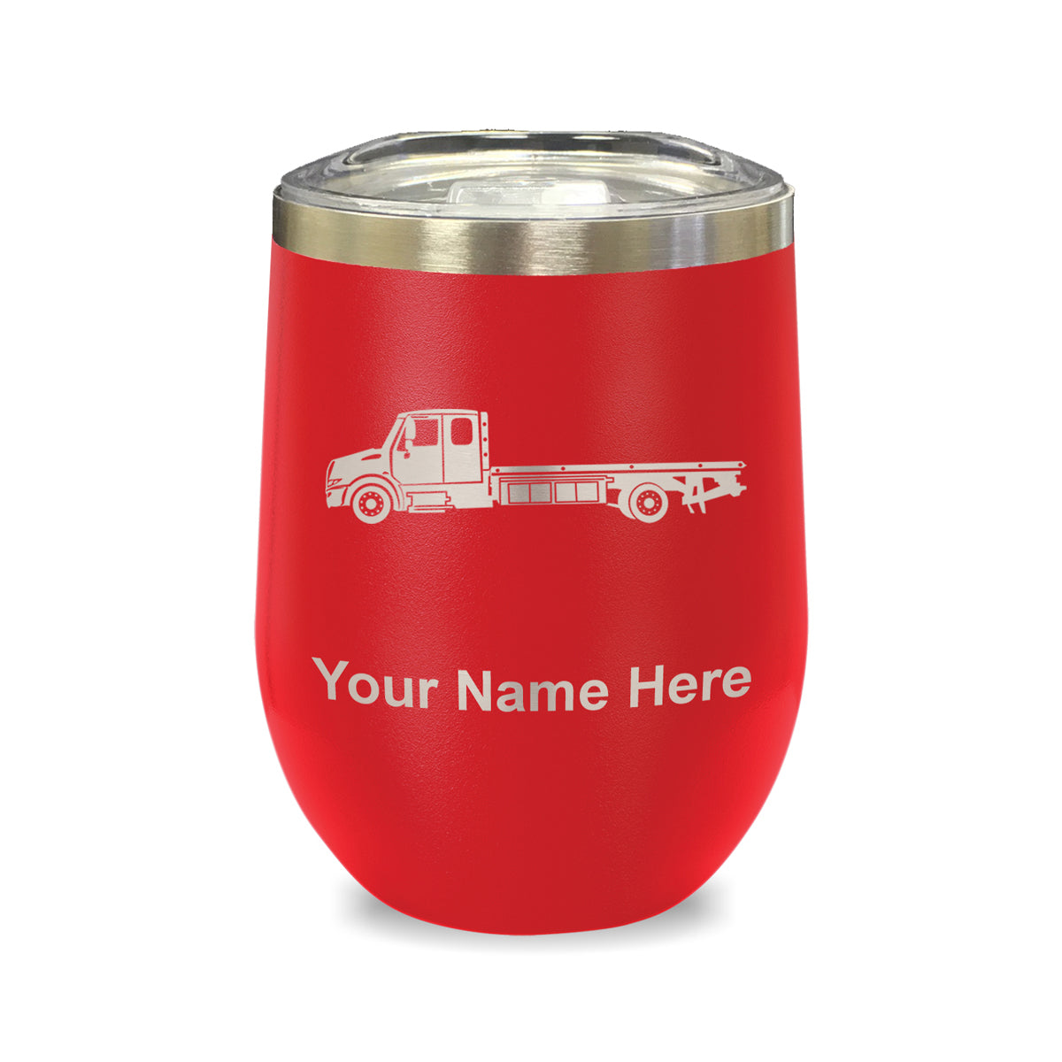 LaserGram Double Wall Stainless Steel Wine Glass, Flat Bed Tow Truck, Personalized Engraving Included