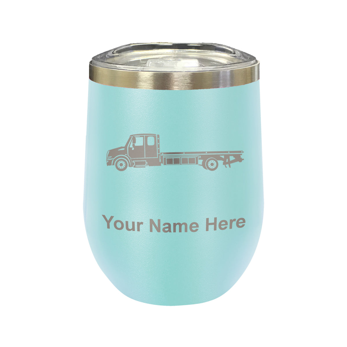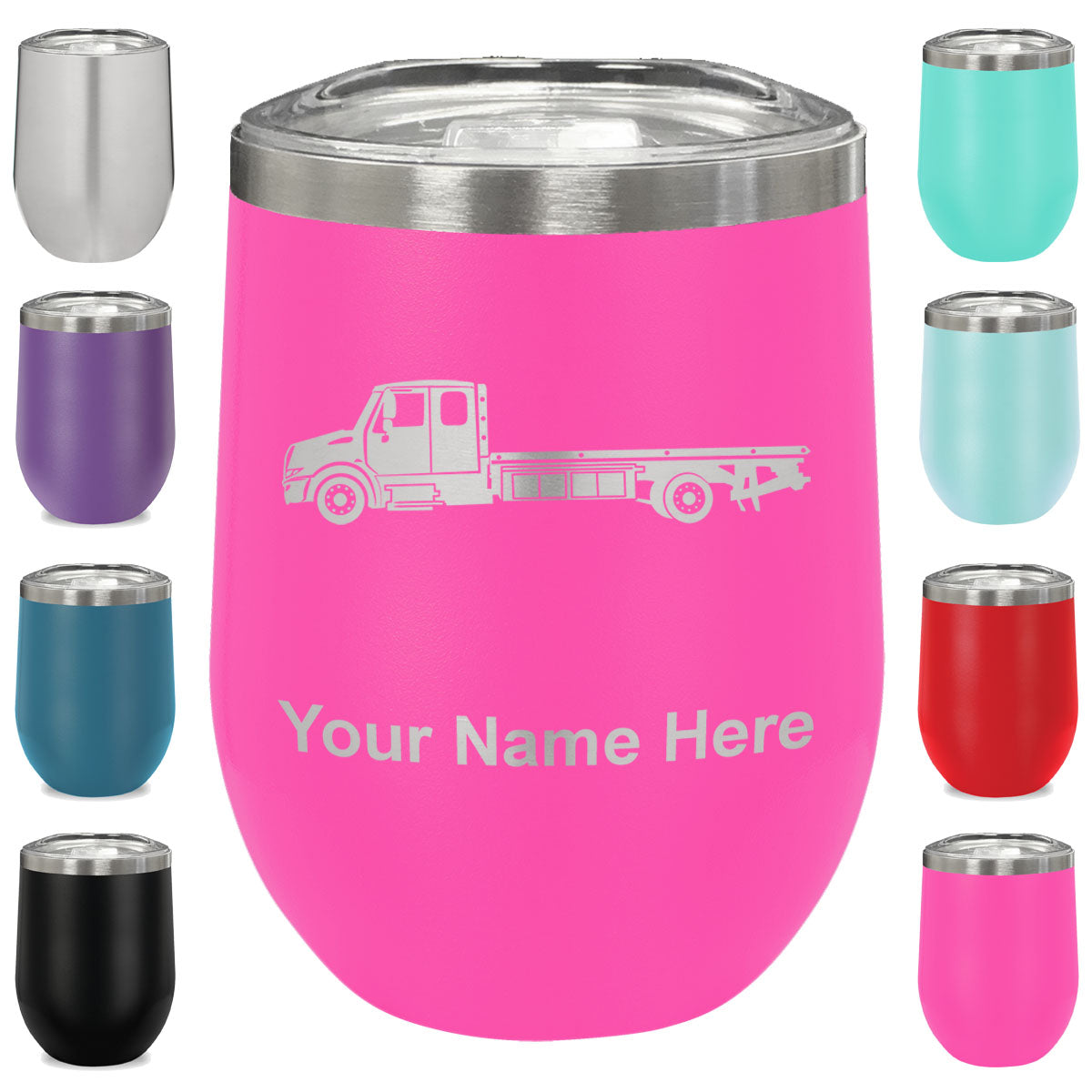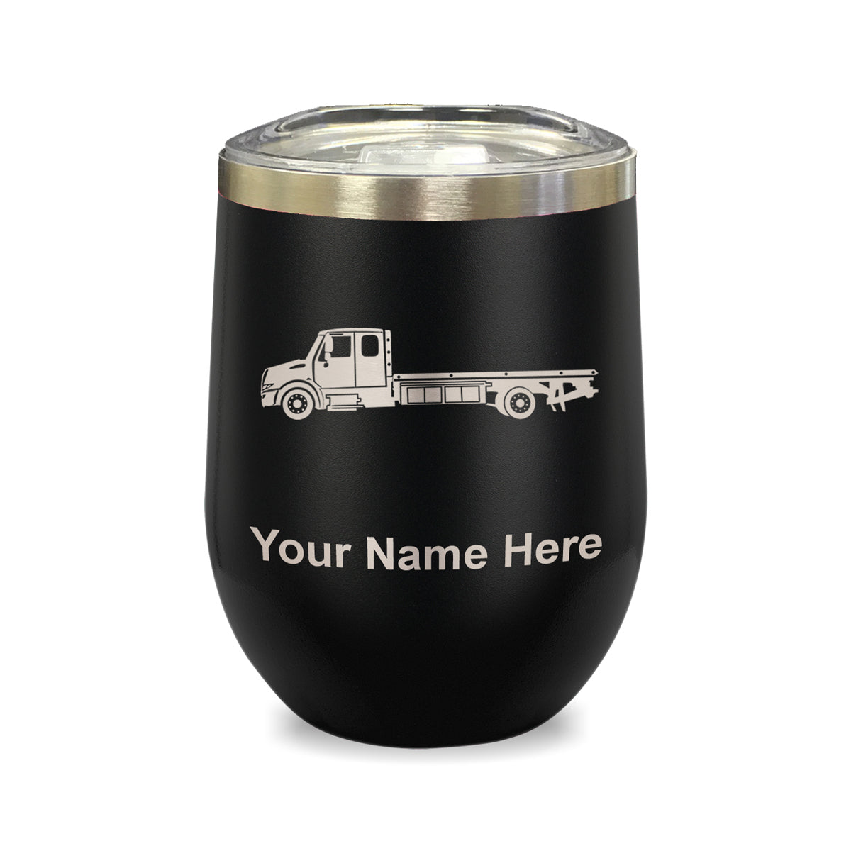 LaserGram Double Wall Stainless Steel Wine Glass, Flat Bed Tow Truck, Personalized Engraving Included