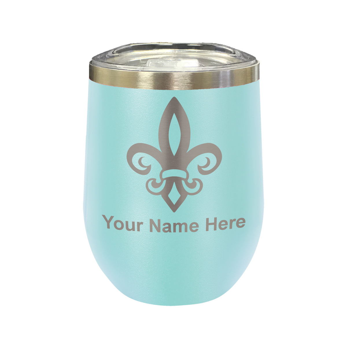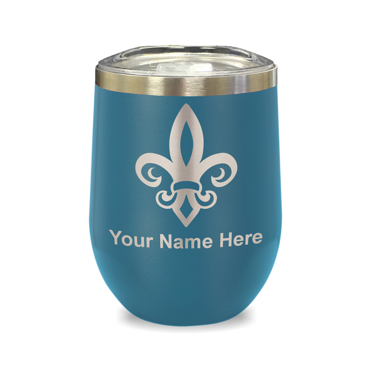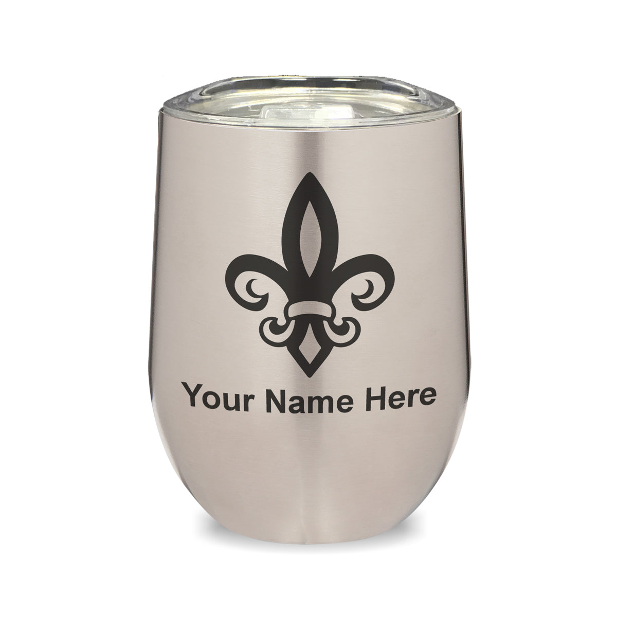 LaserGram Double Wall Stainless Steel Wine Glass, Fleur de Lis, Personalized Engraving Included