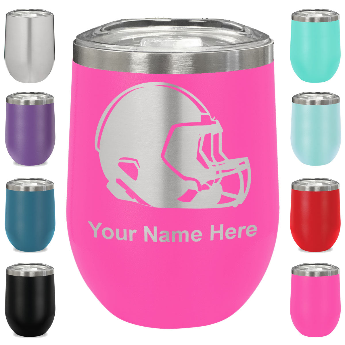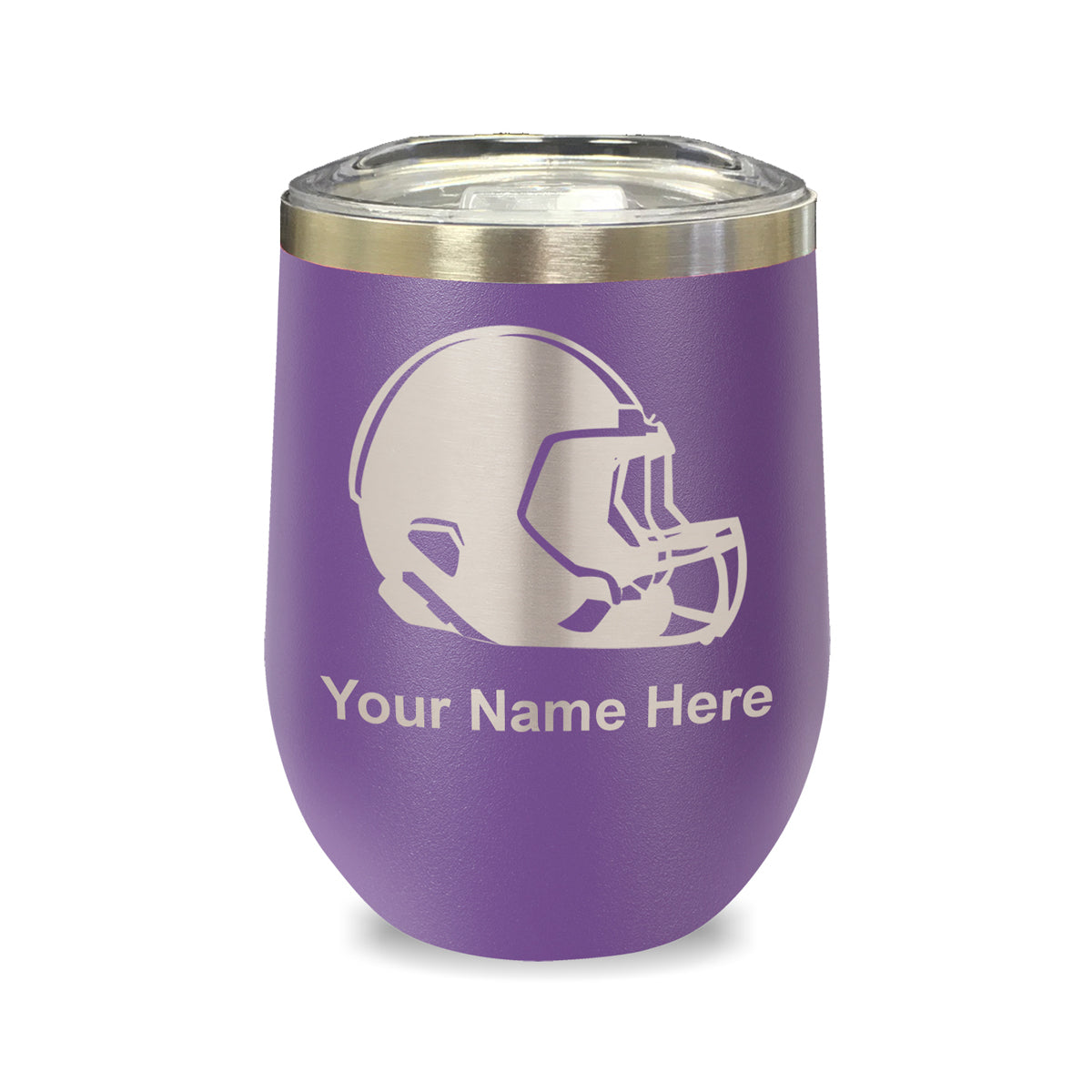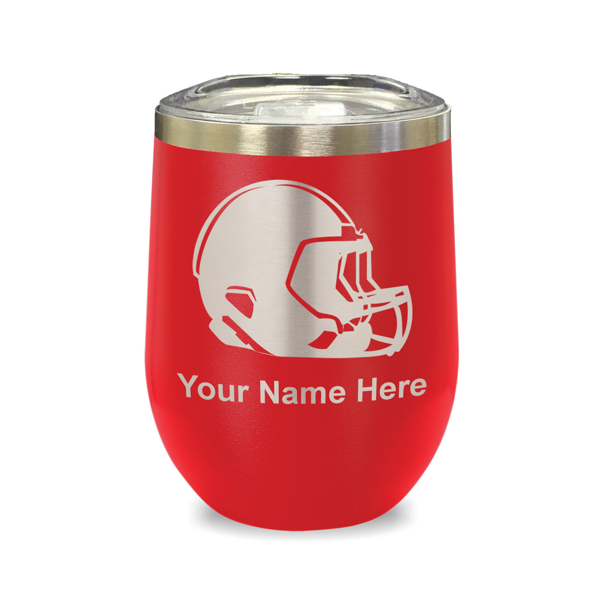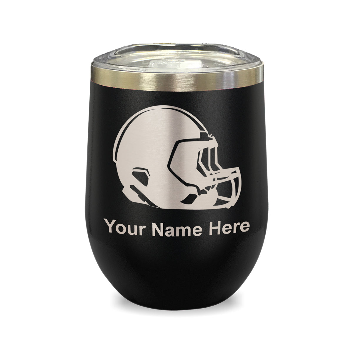 LaserGram Double Wall Stainless Steel Wine Glass, Football Helmet, Personalized Engraving Included
