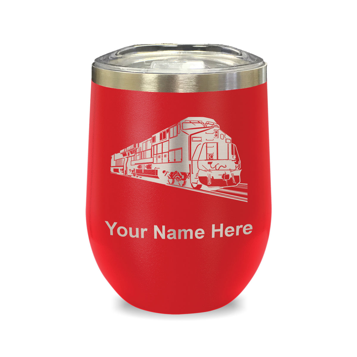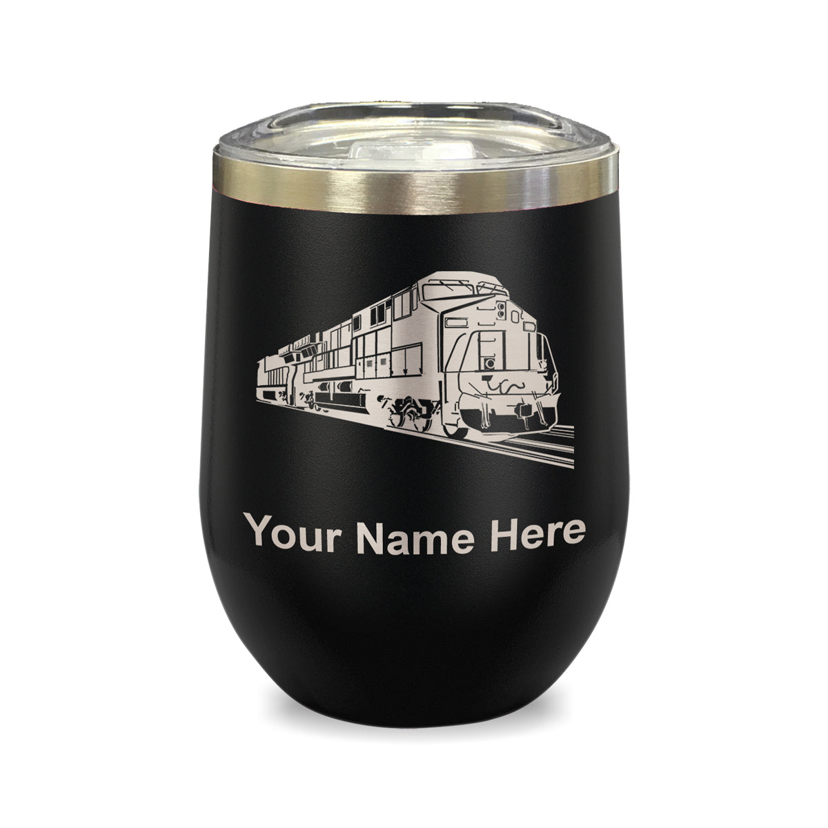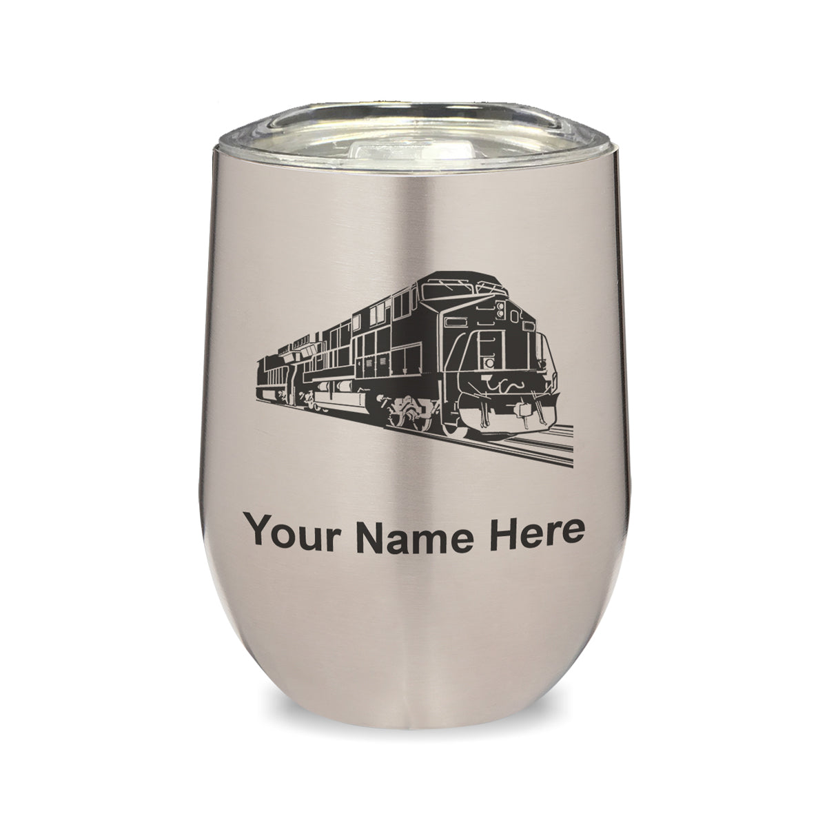 LaserGram Double Wall Stainless Steel Wine Glass, Freight Train, Personalized Engraving Included