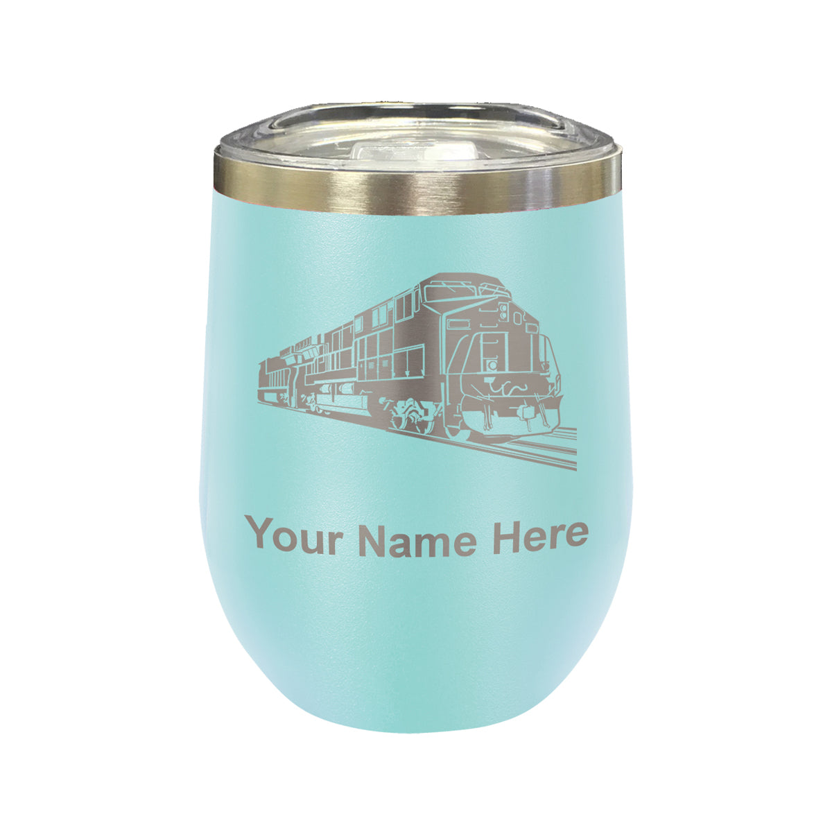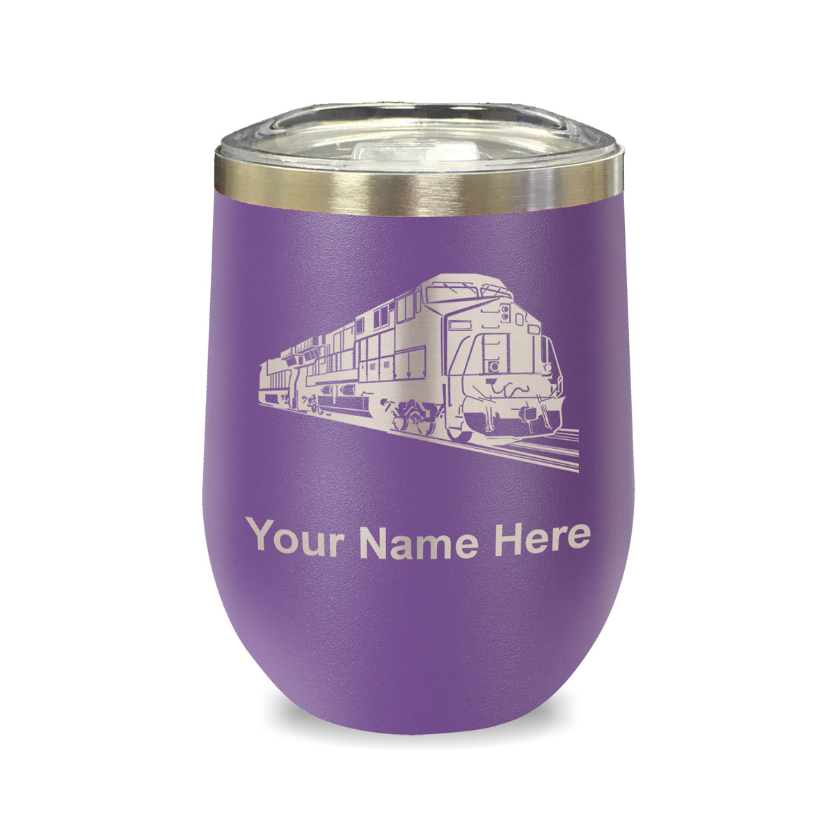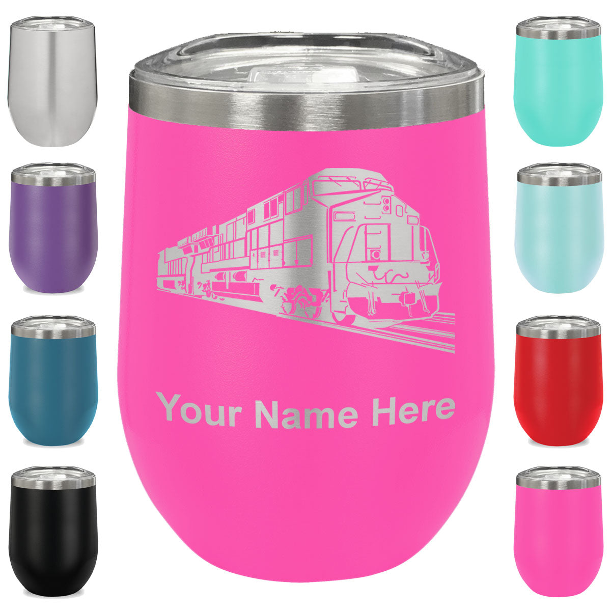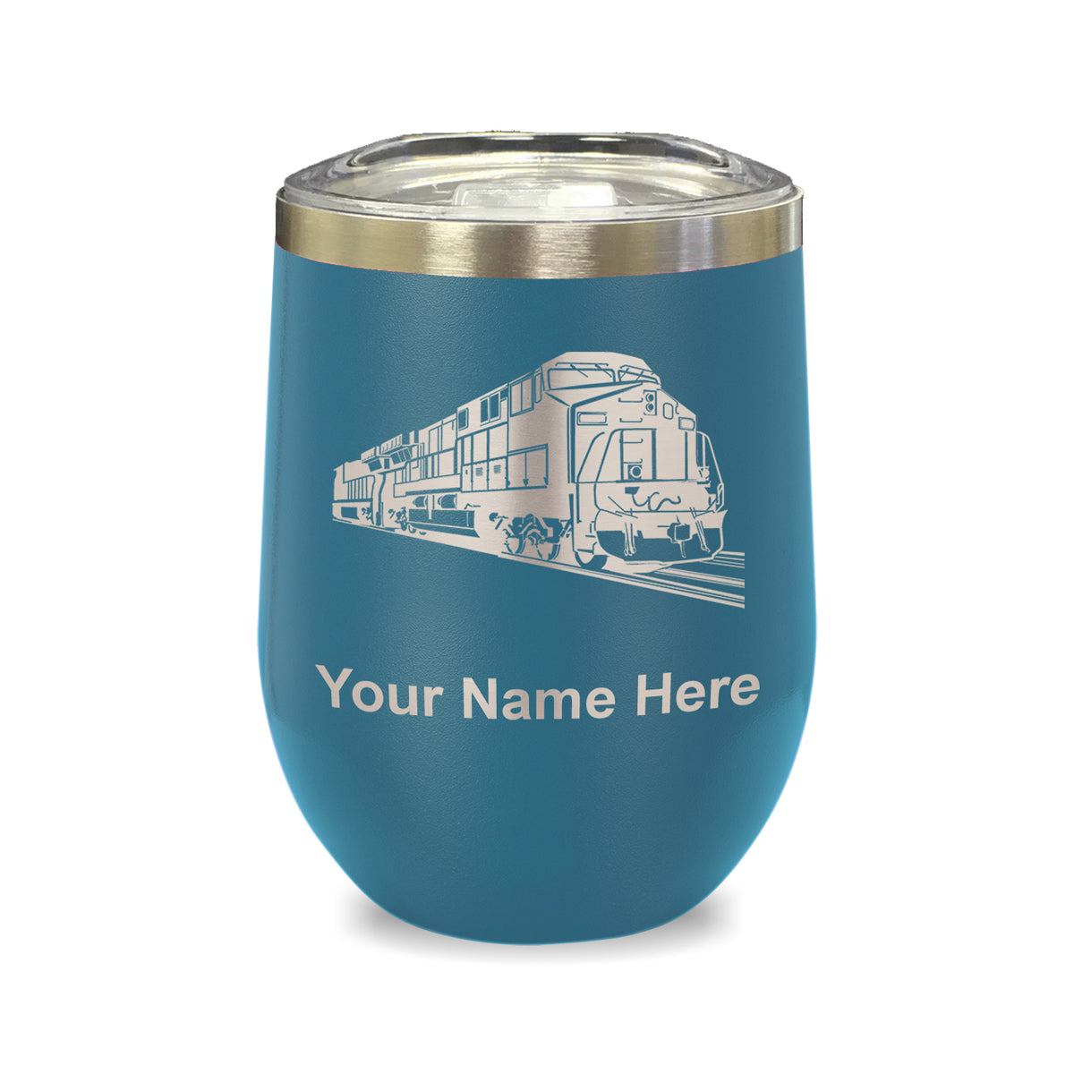 LaserGram Double Wall Stainless Steel Wine Glass, Freight Train, Personalized Engraving Included