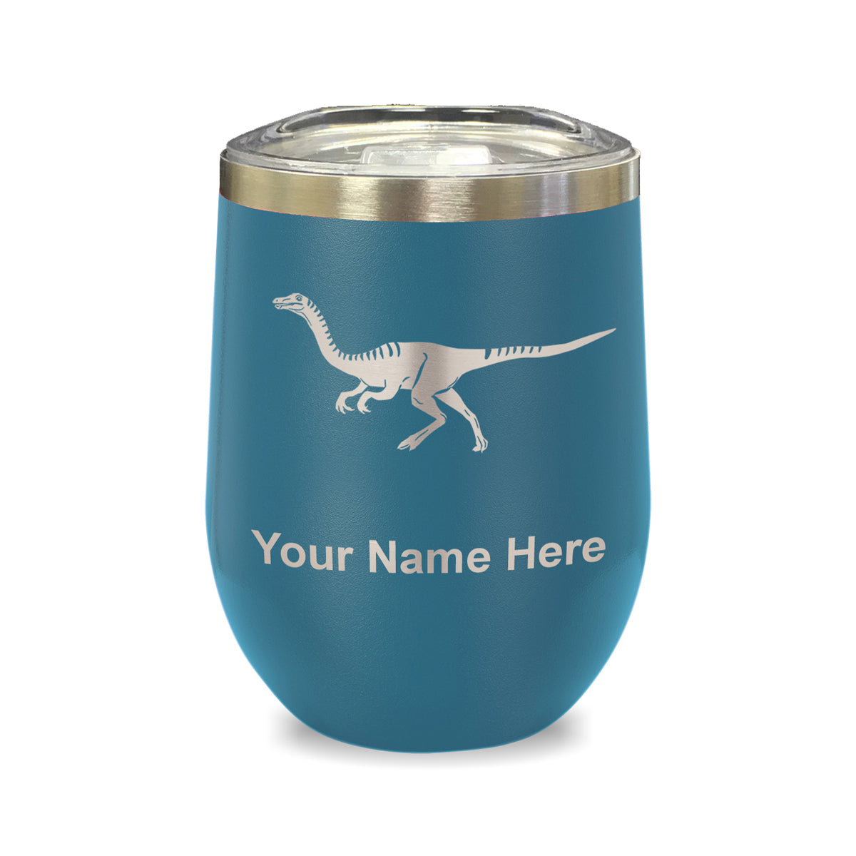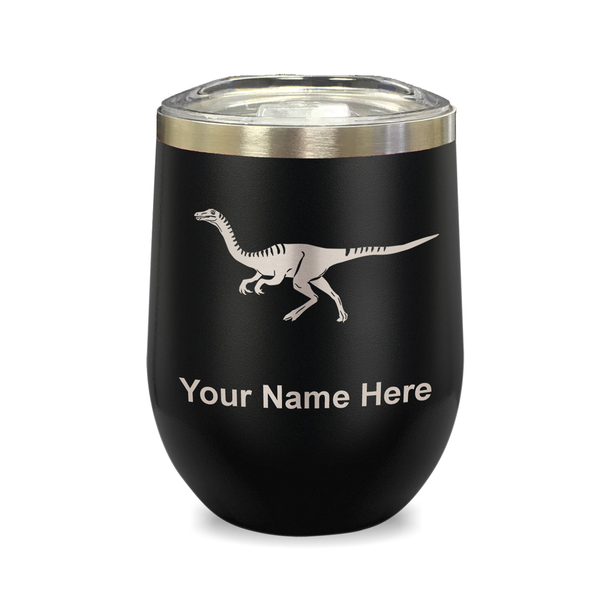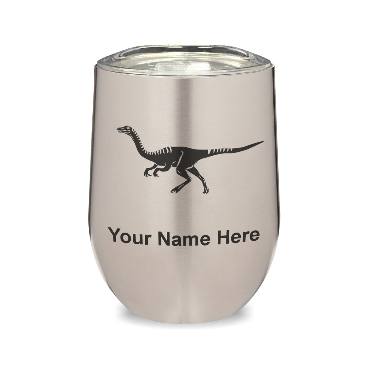 LaserGram Double Wall Stainless Steel Wine Glass, Gallimimus Dinosaur, Personalized Engraving Included