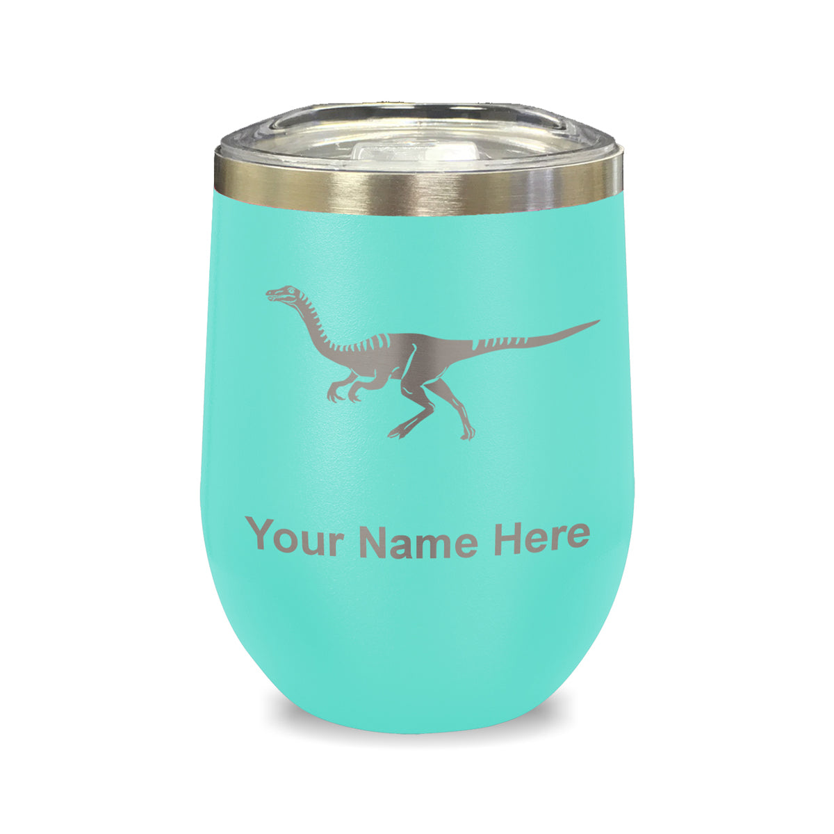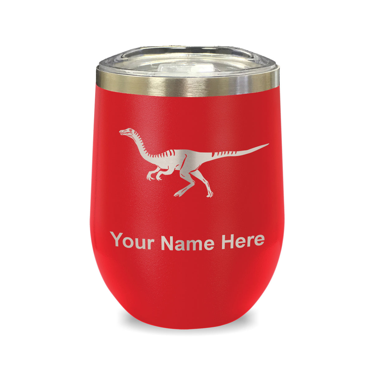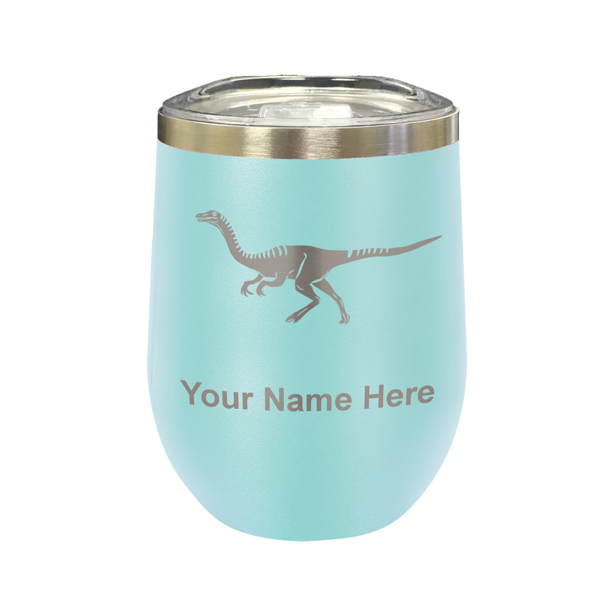 LaserGram Double Wall Stainless Steel Wine Glass, Gallimimus Dinosaur, Personalized Engraving Included