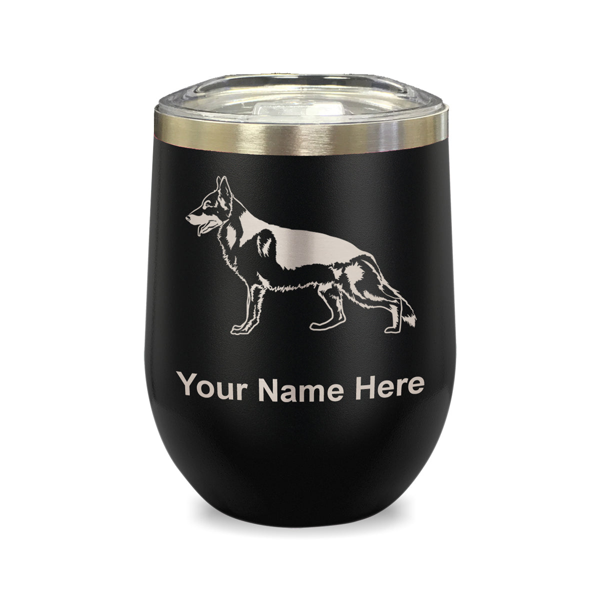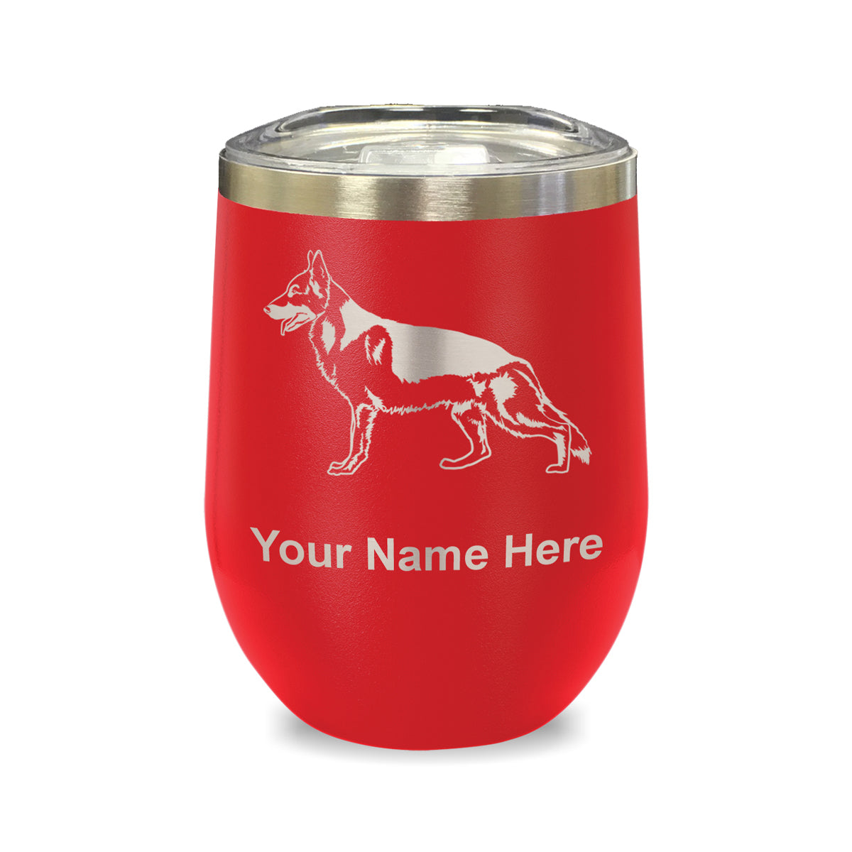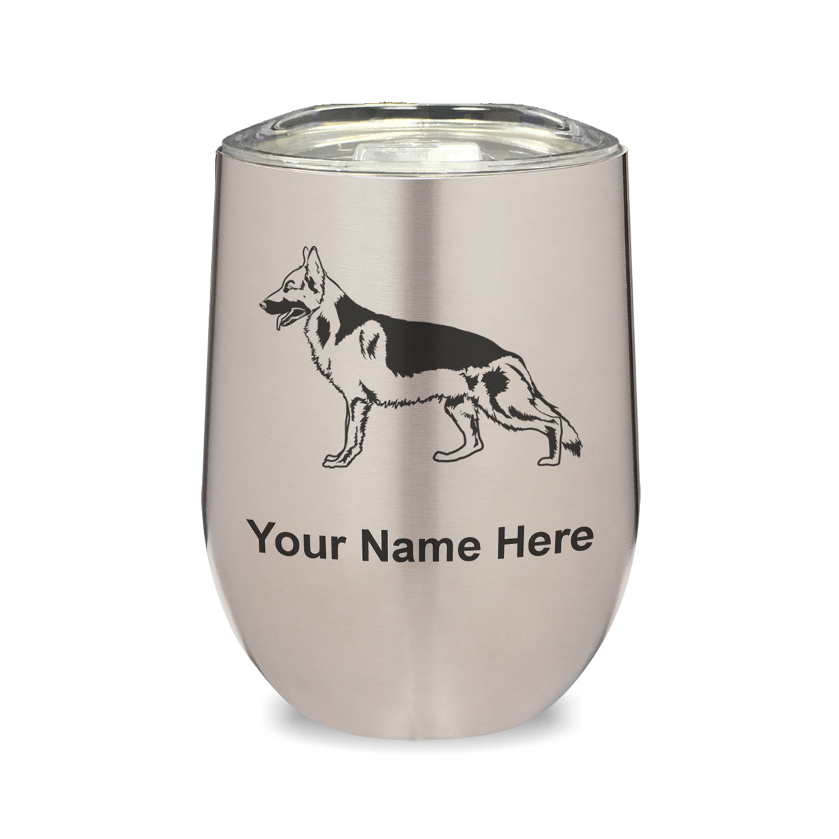 LaserGram Double Wall Stainless Steel Wine Glass, German Shepherd Dog, Personalized Engraving Included
