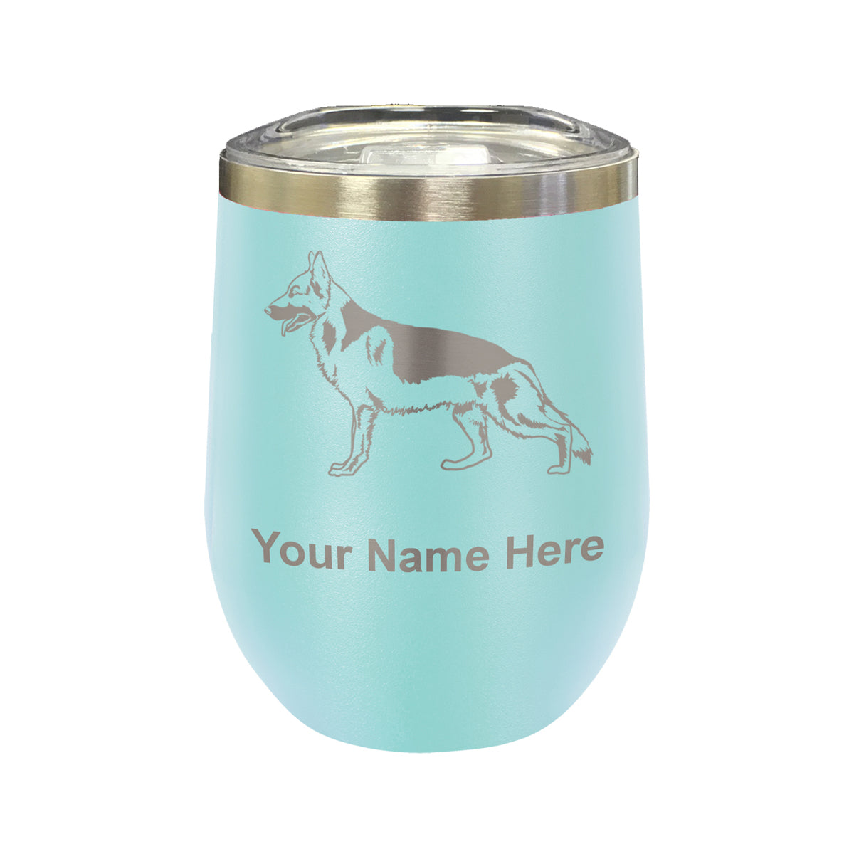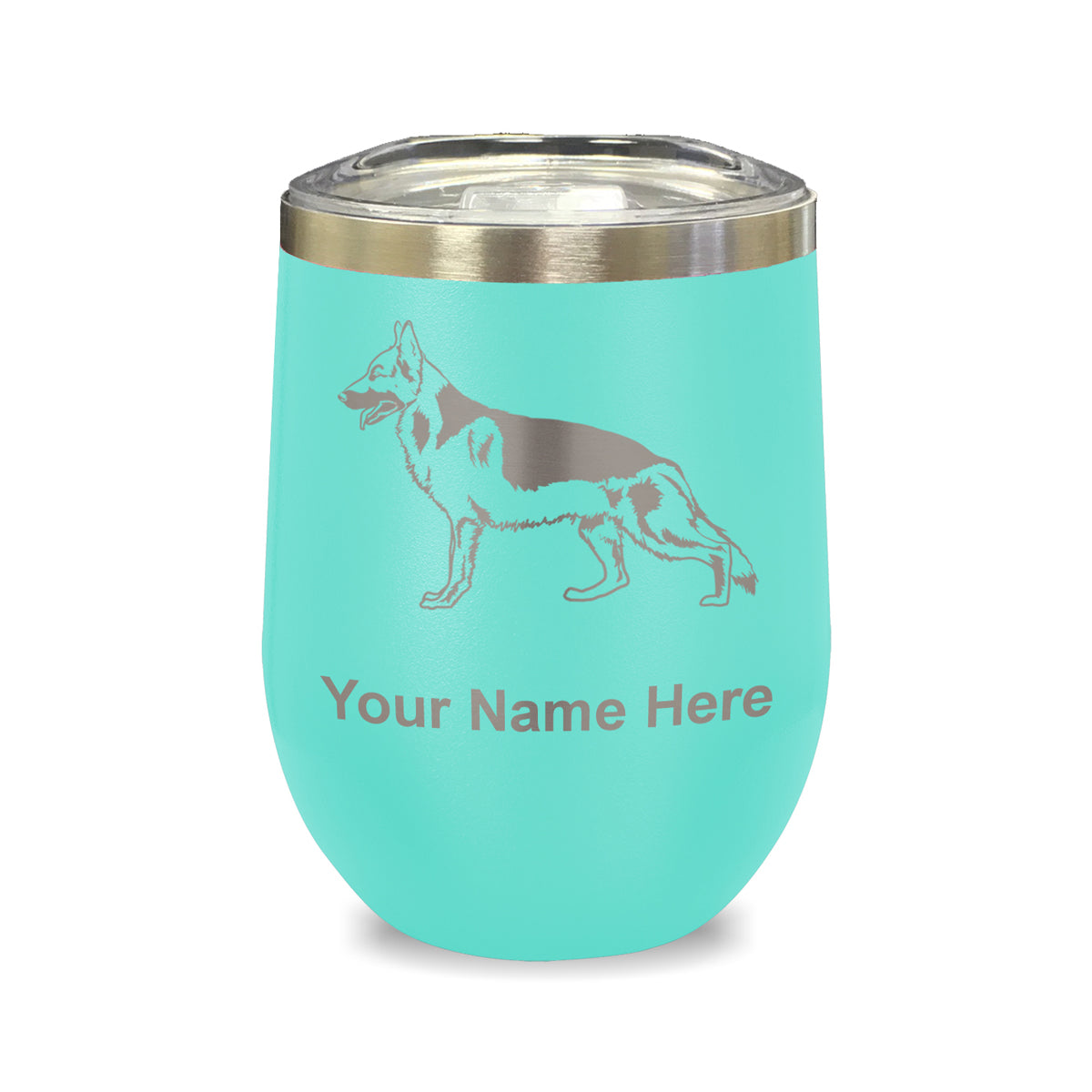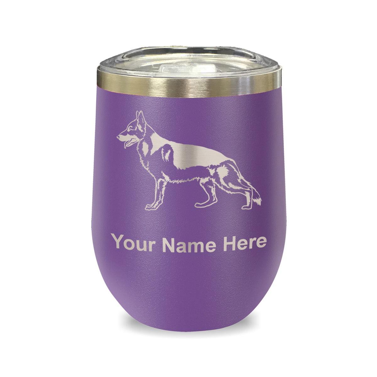 LaserGram Double Wall Stainless Steel Wine Glass, German Shepherd Dog, Personalized Engraving Included
