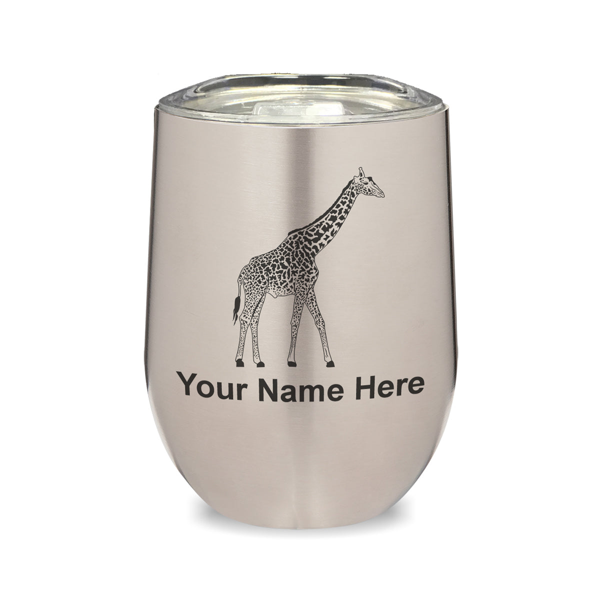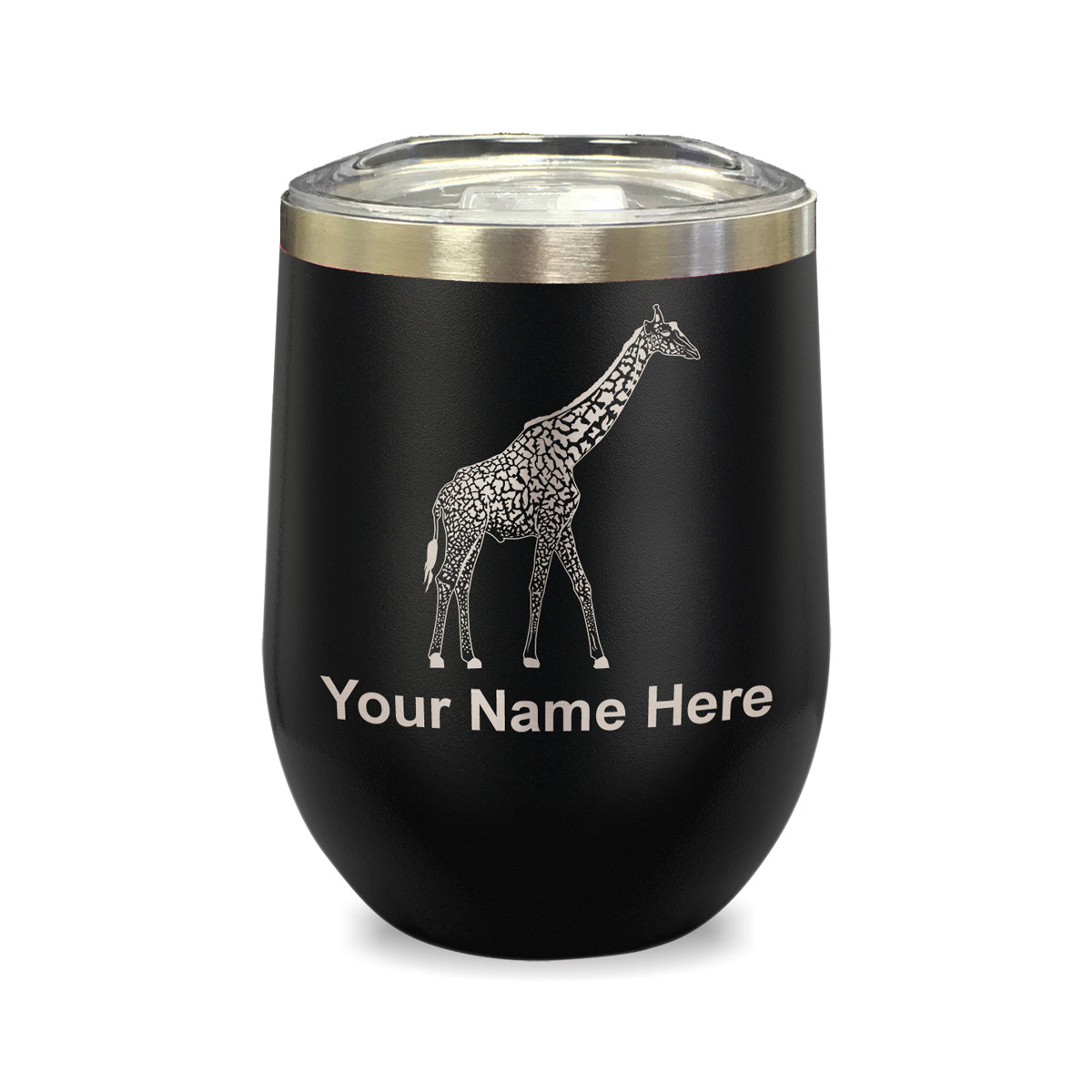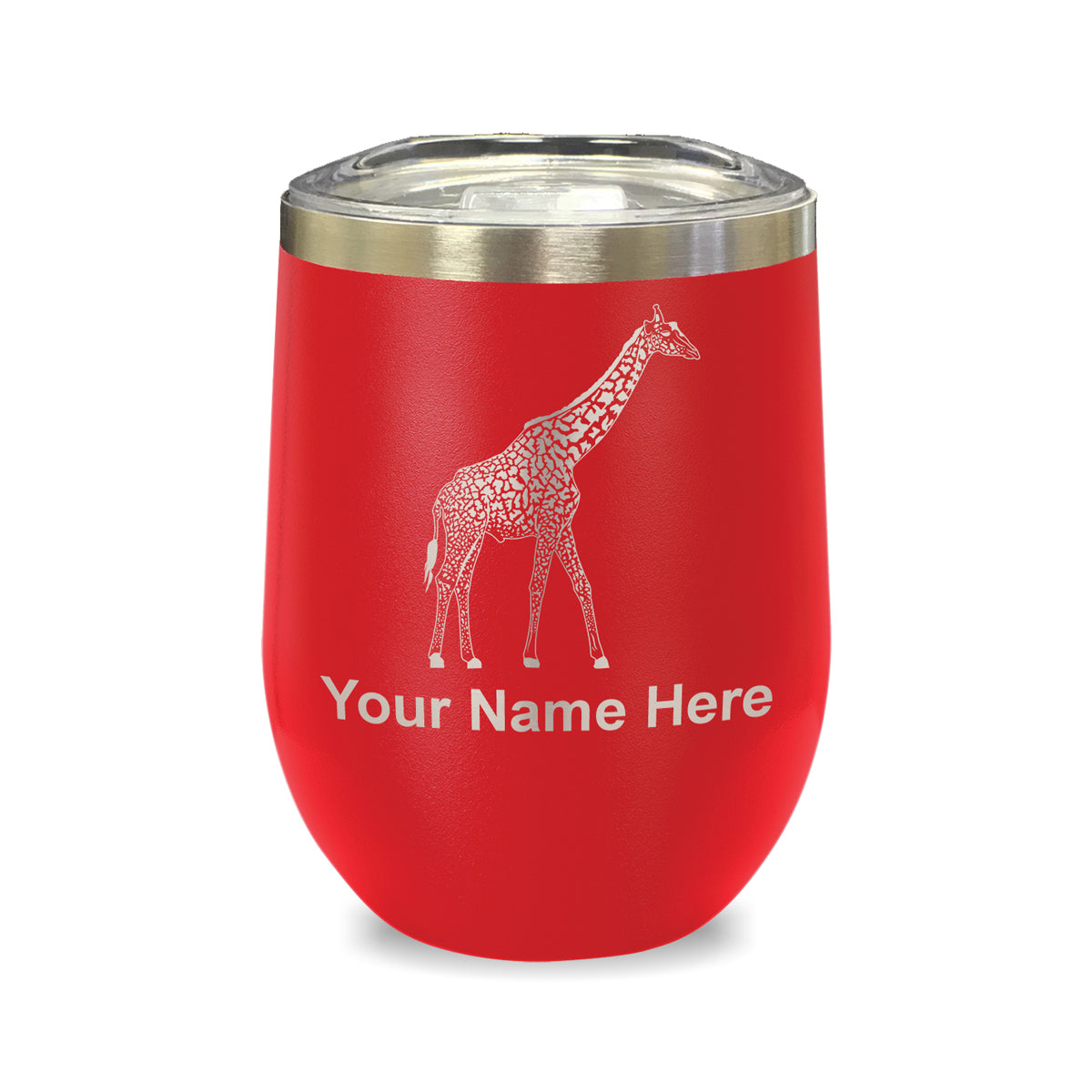 LaserGram Double Wall Stainless Steel Wine Glass, Giraffe, Personalized Engraving Included