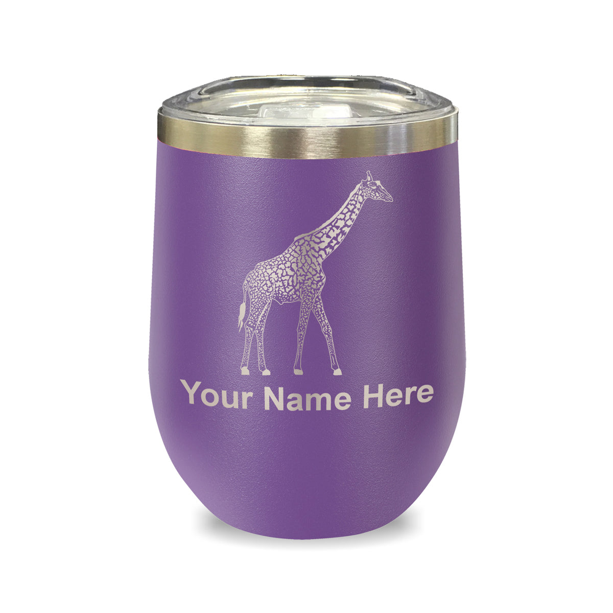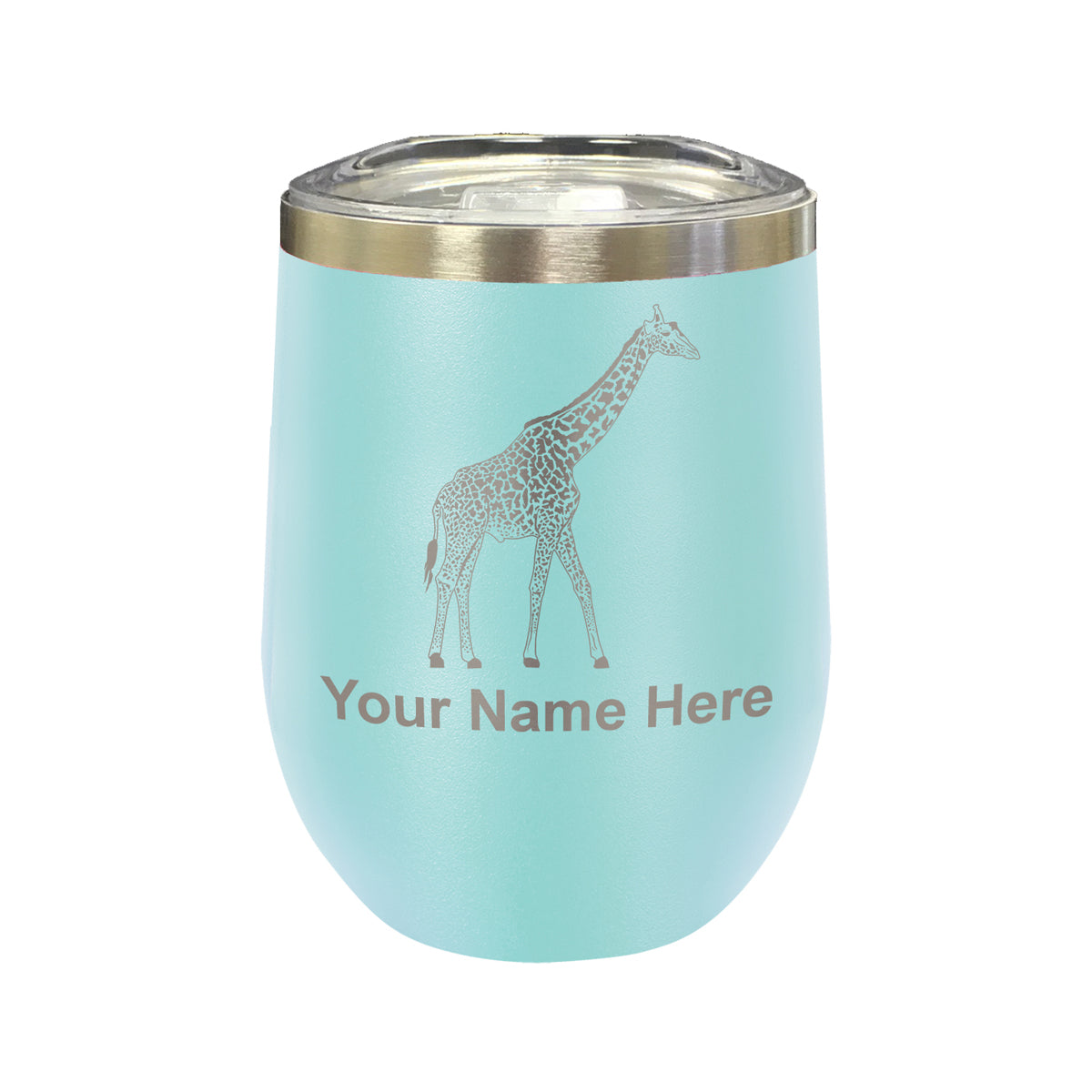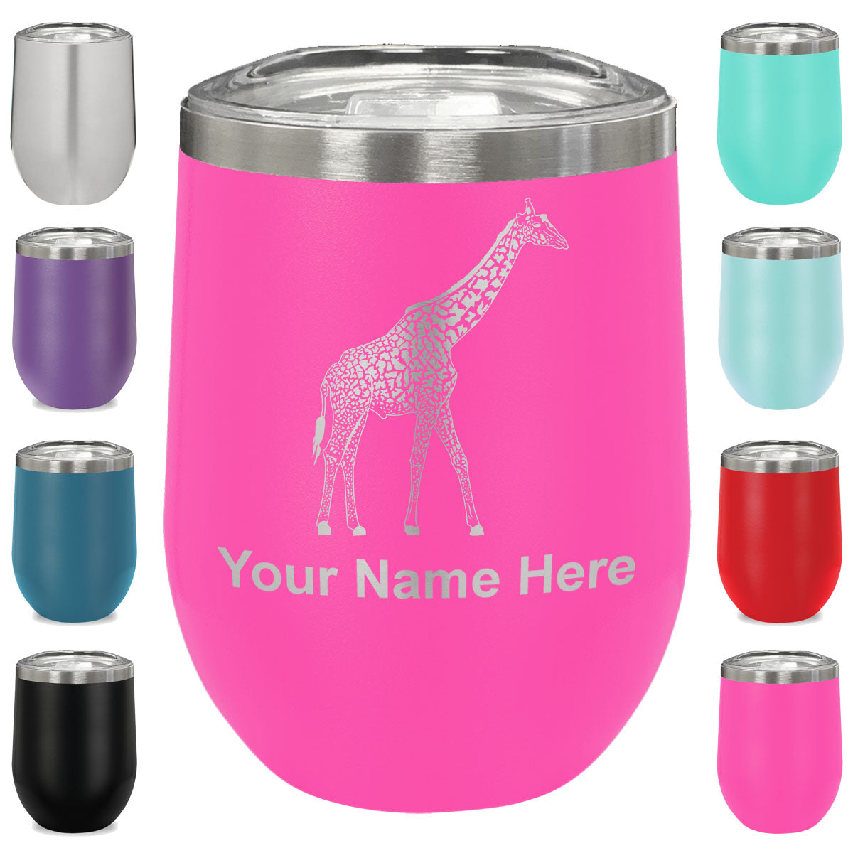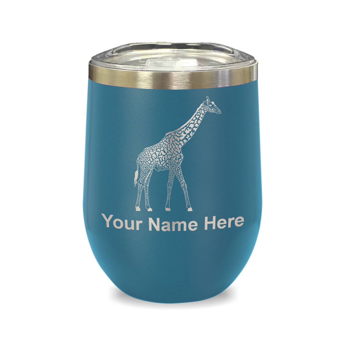 LaserGram Double Wall Stainless Steel Wine Glass, Giraffe, Personalized Engraving Included