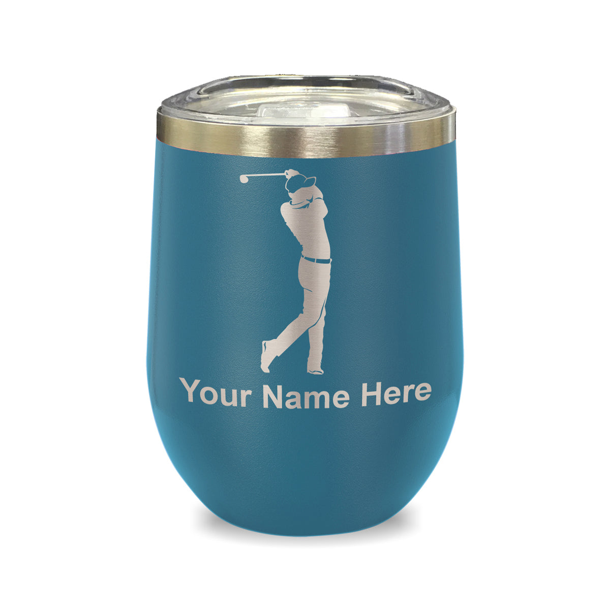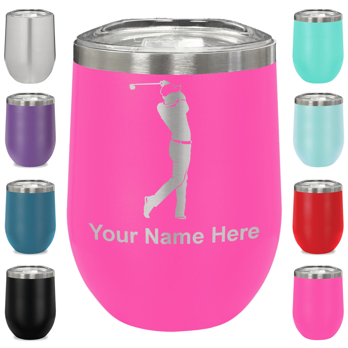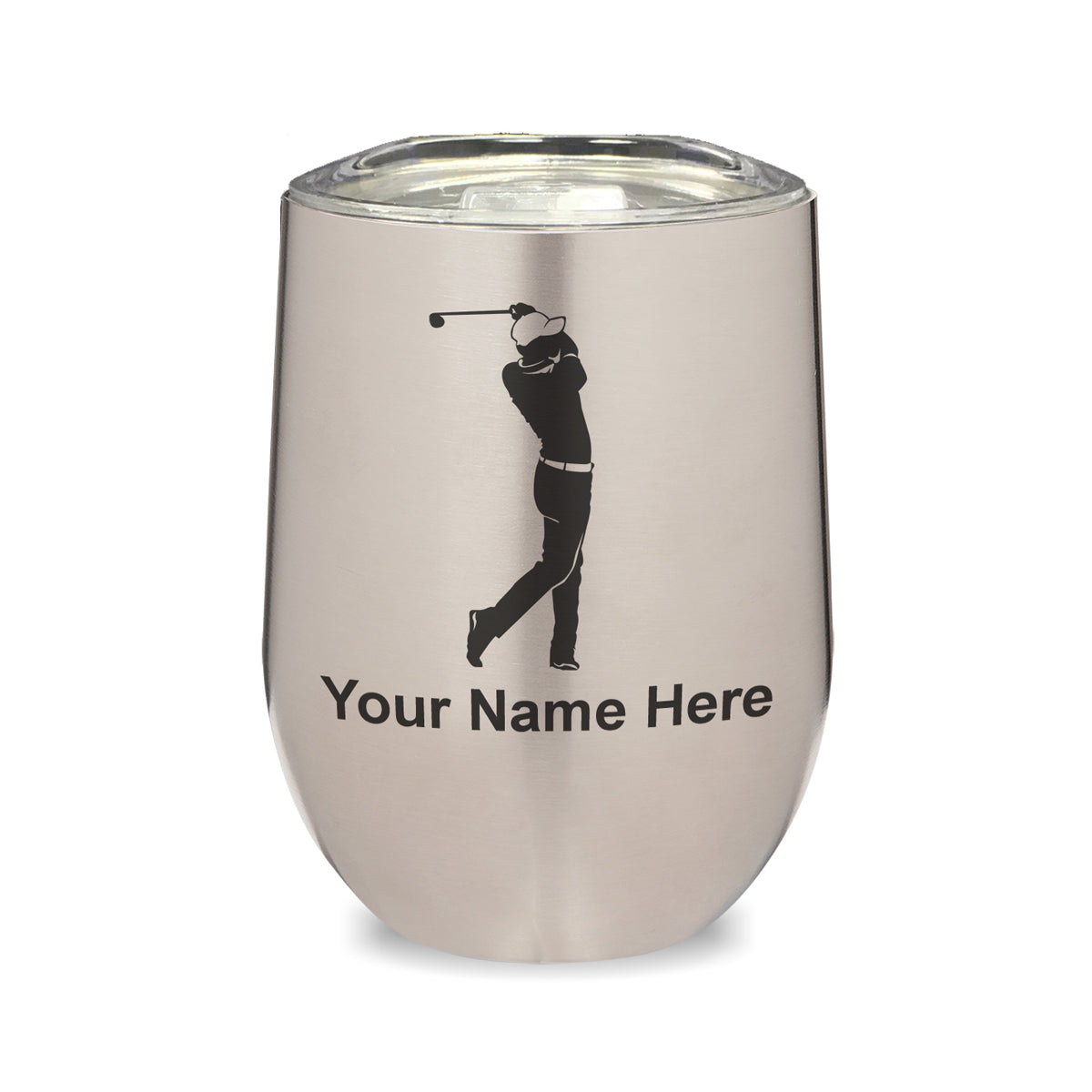 LaserGram Double Wall Stainless Steel Wine Glass, Golfer Golfing, Personalized Engraving Included