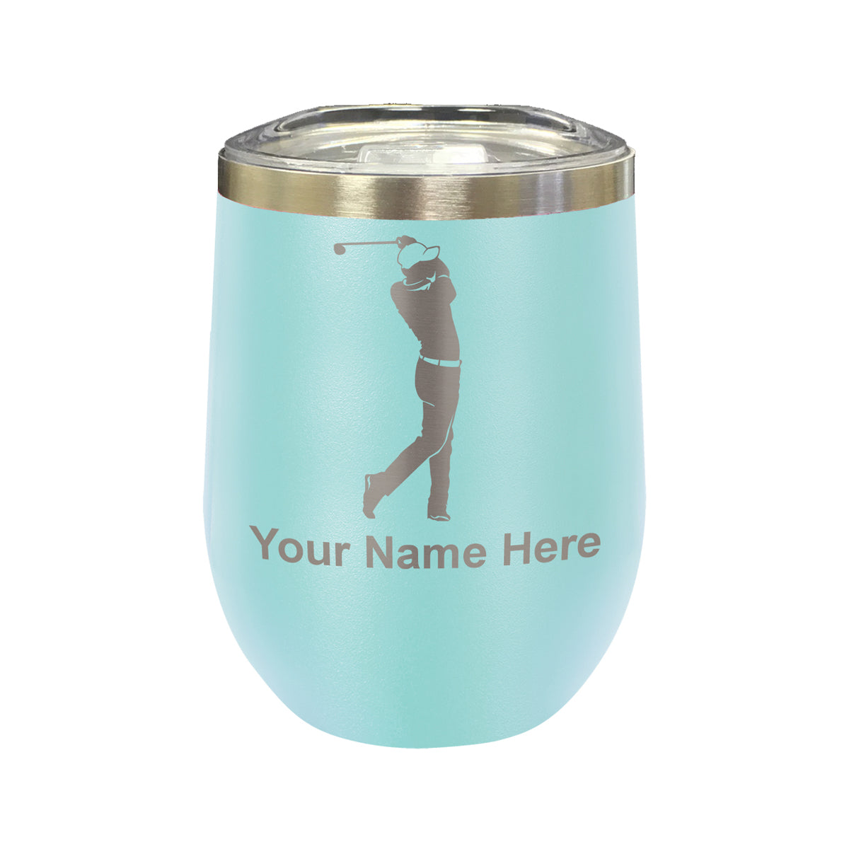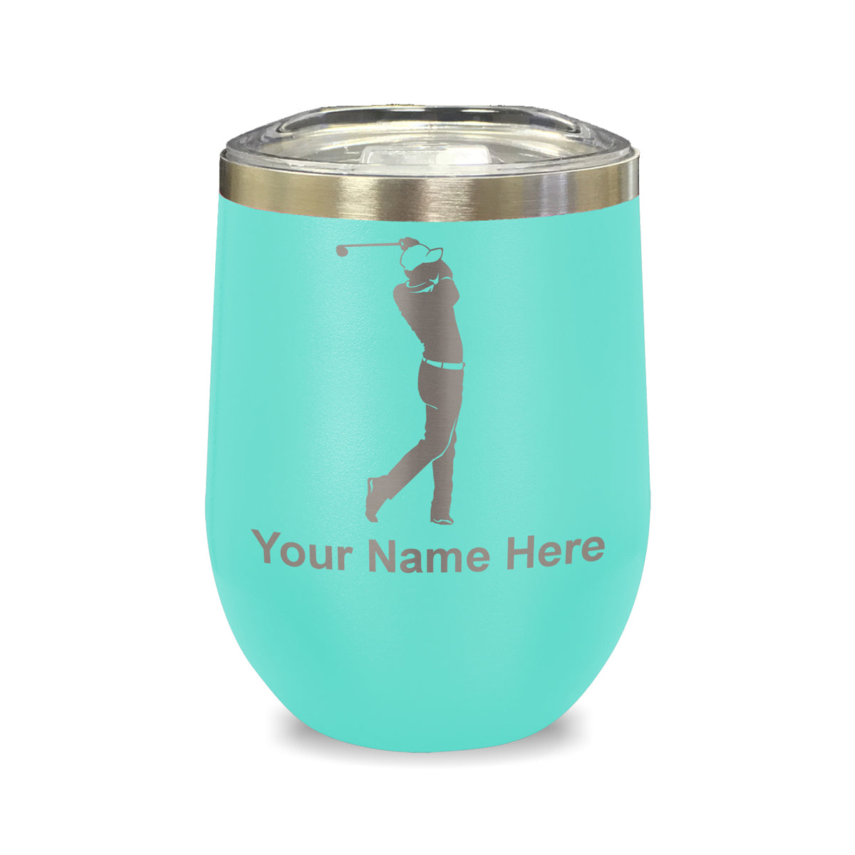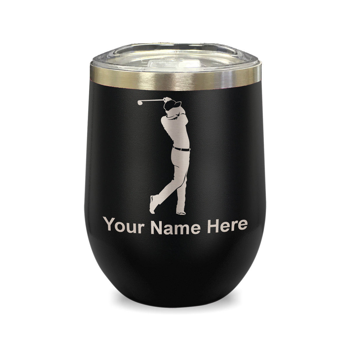 LaserGram Double Wall Stainless Steel Wine Glass, Golfer Golfing, Personalized Engraving Included