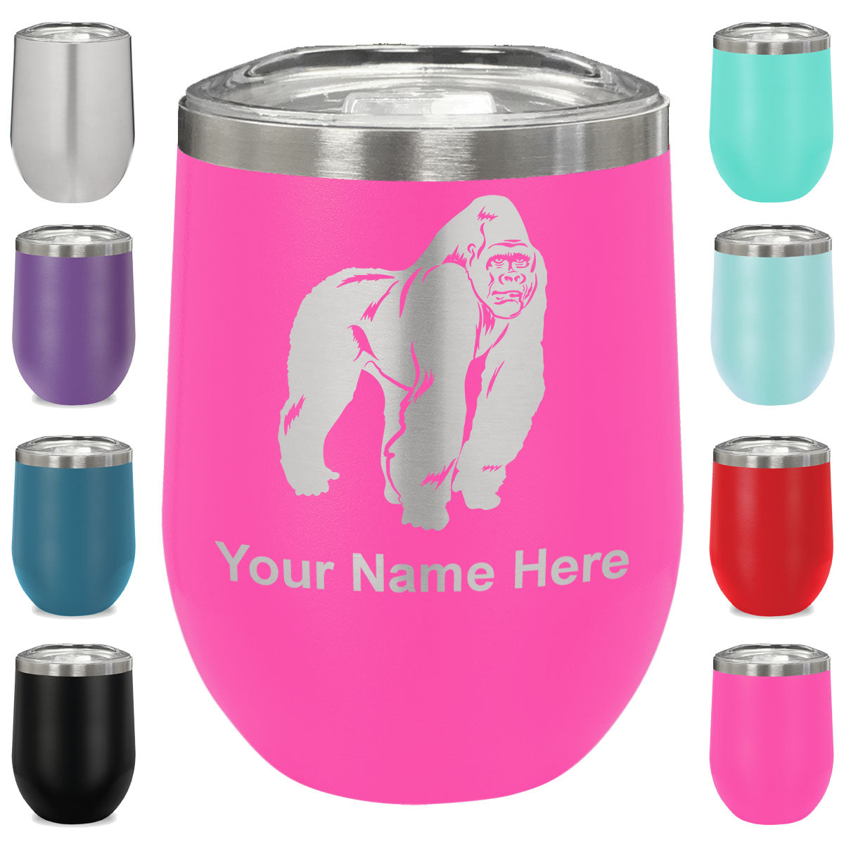 LaserGram Double Wall Stainless Steel Wine Glass, Gorilla, Personalized Engraving Included