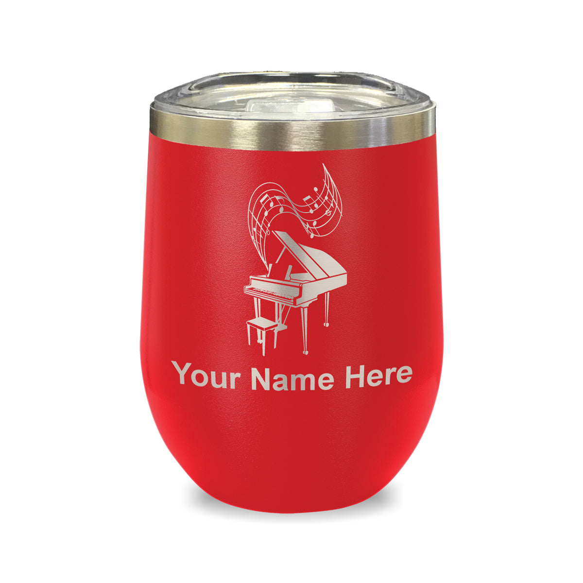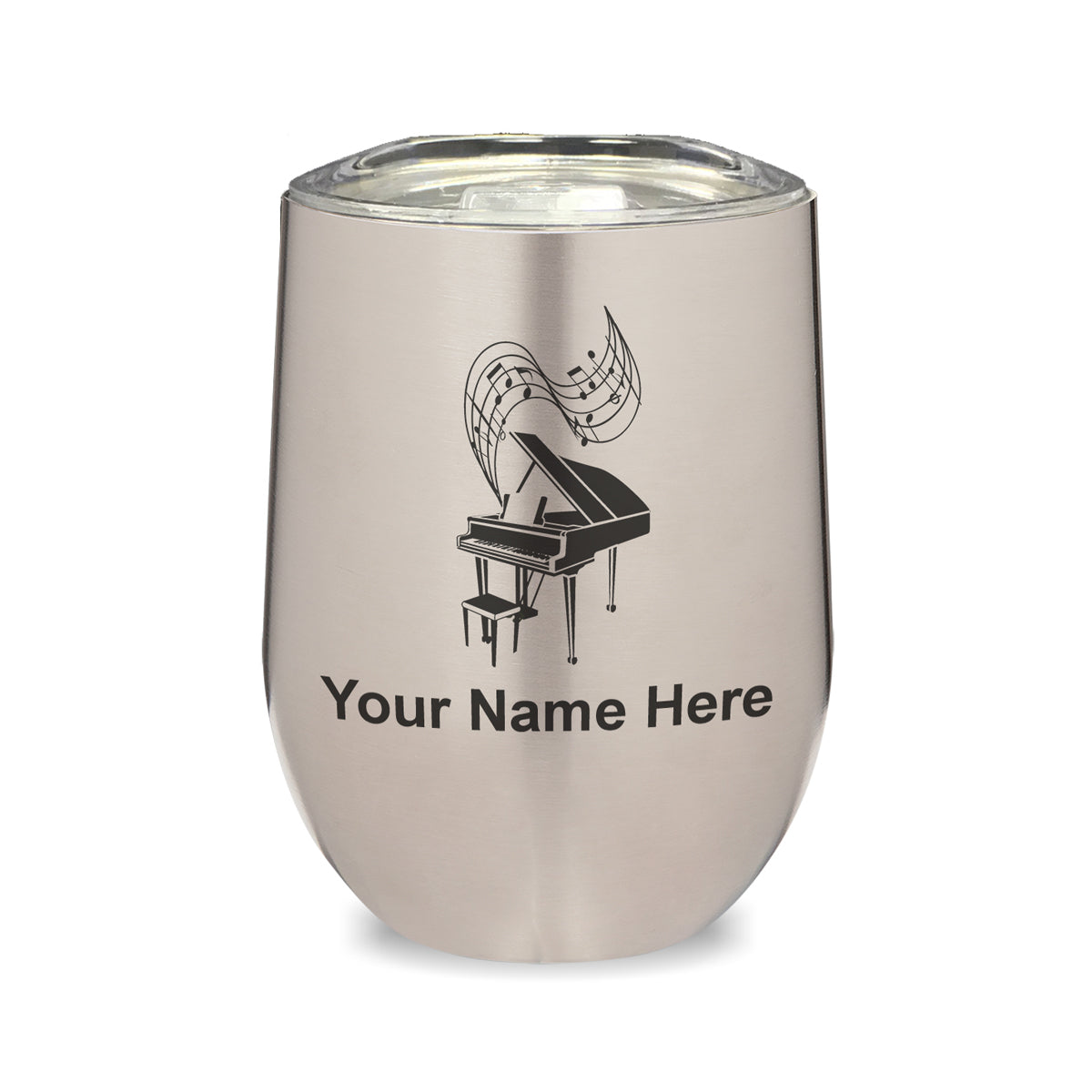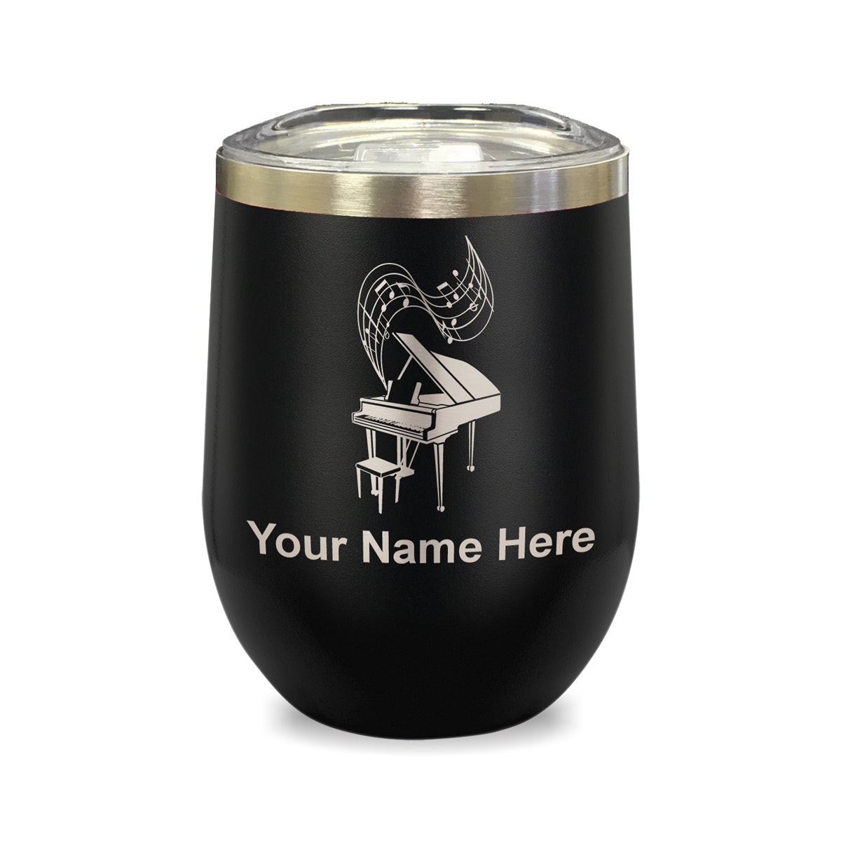 LaserGram Double Wall Stainless Steel Wine Glass, Grand Piano, Personalized Engraving Included