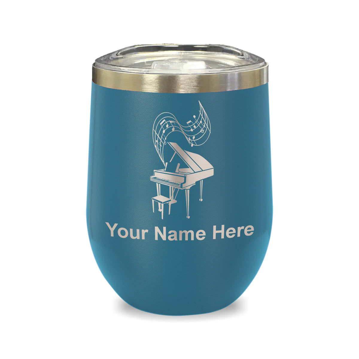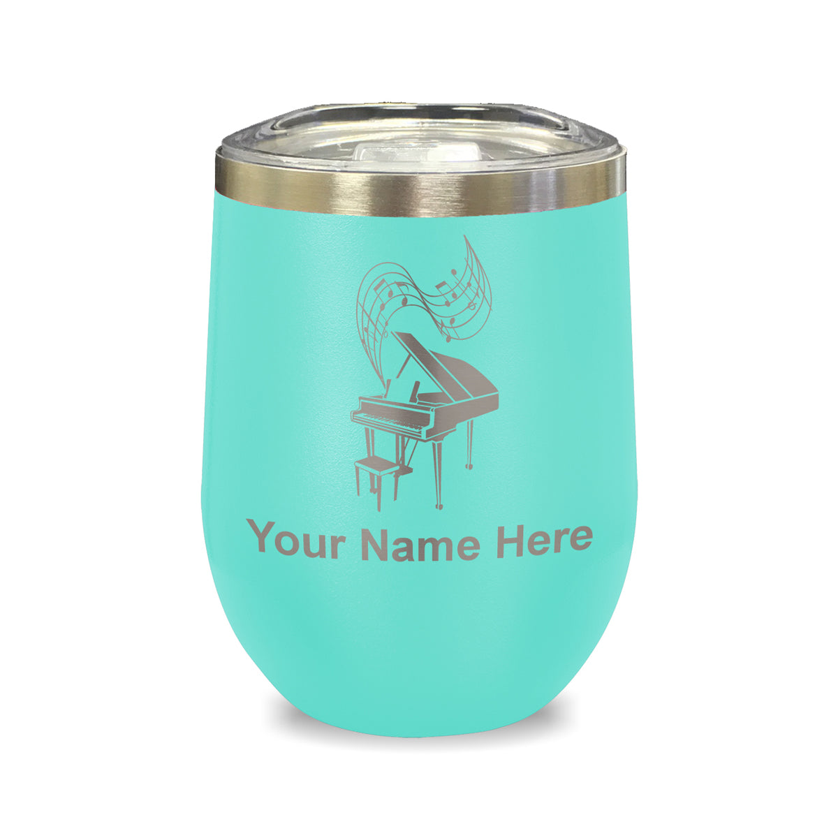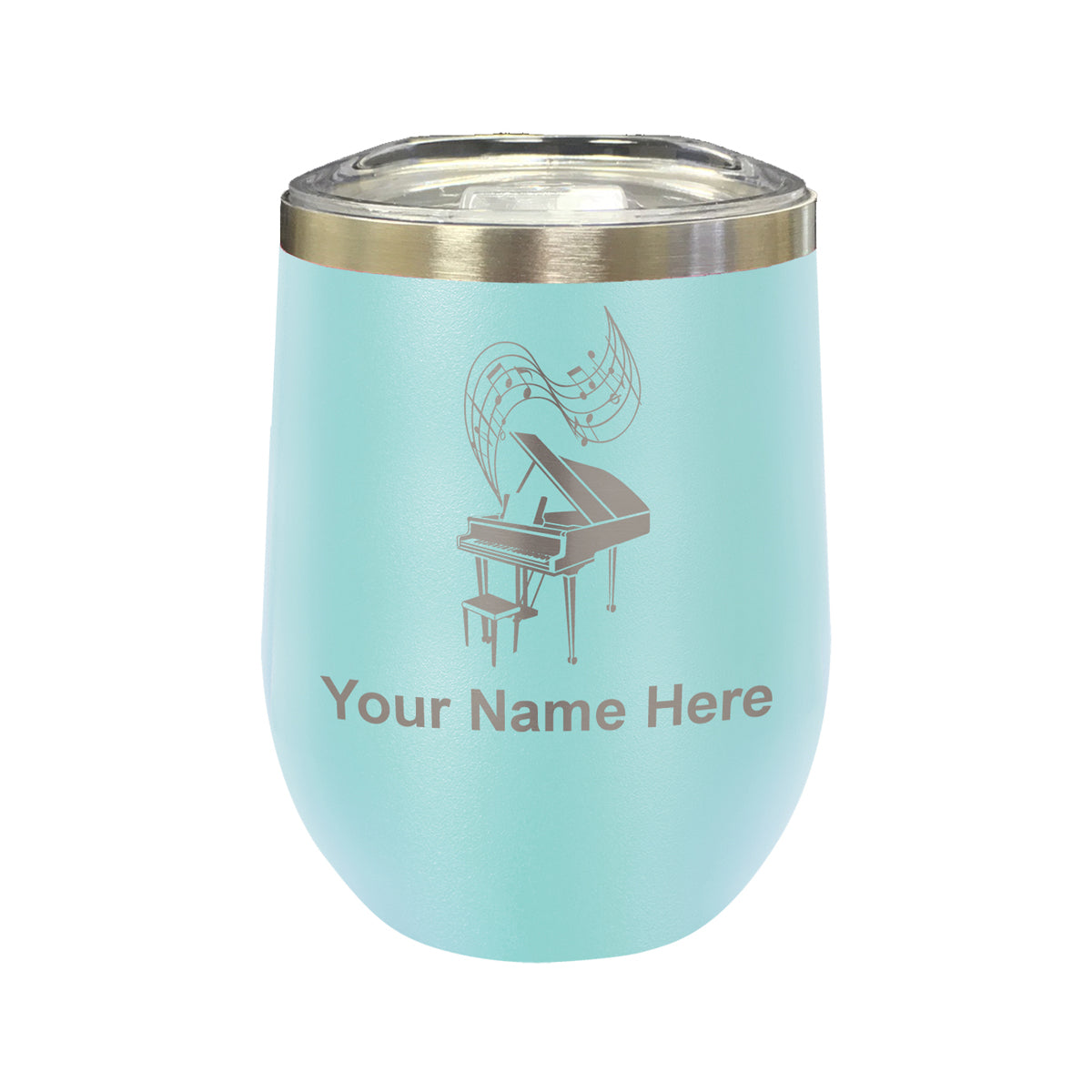 LaserGram Double Wall Stainless Steel Wine Glass, Grand Piano, Personalized Engraving Included
