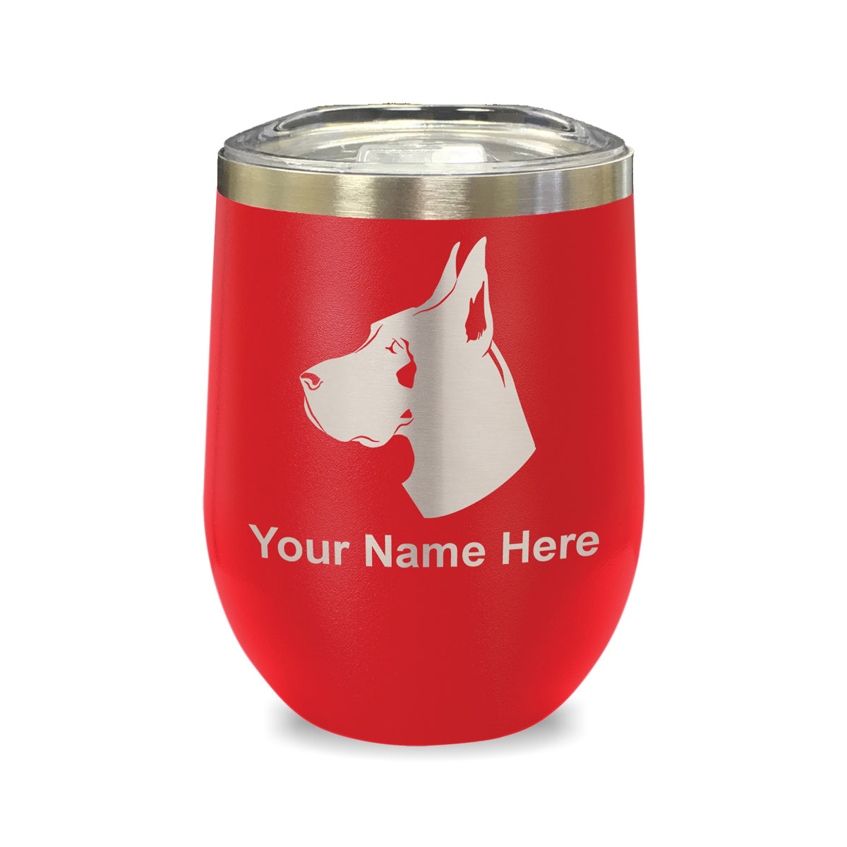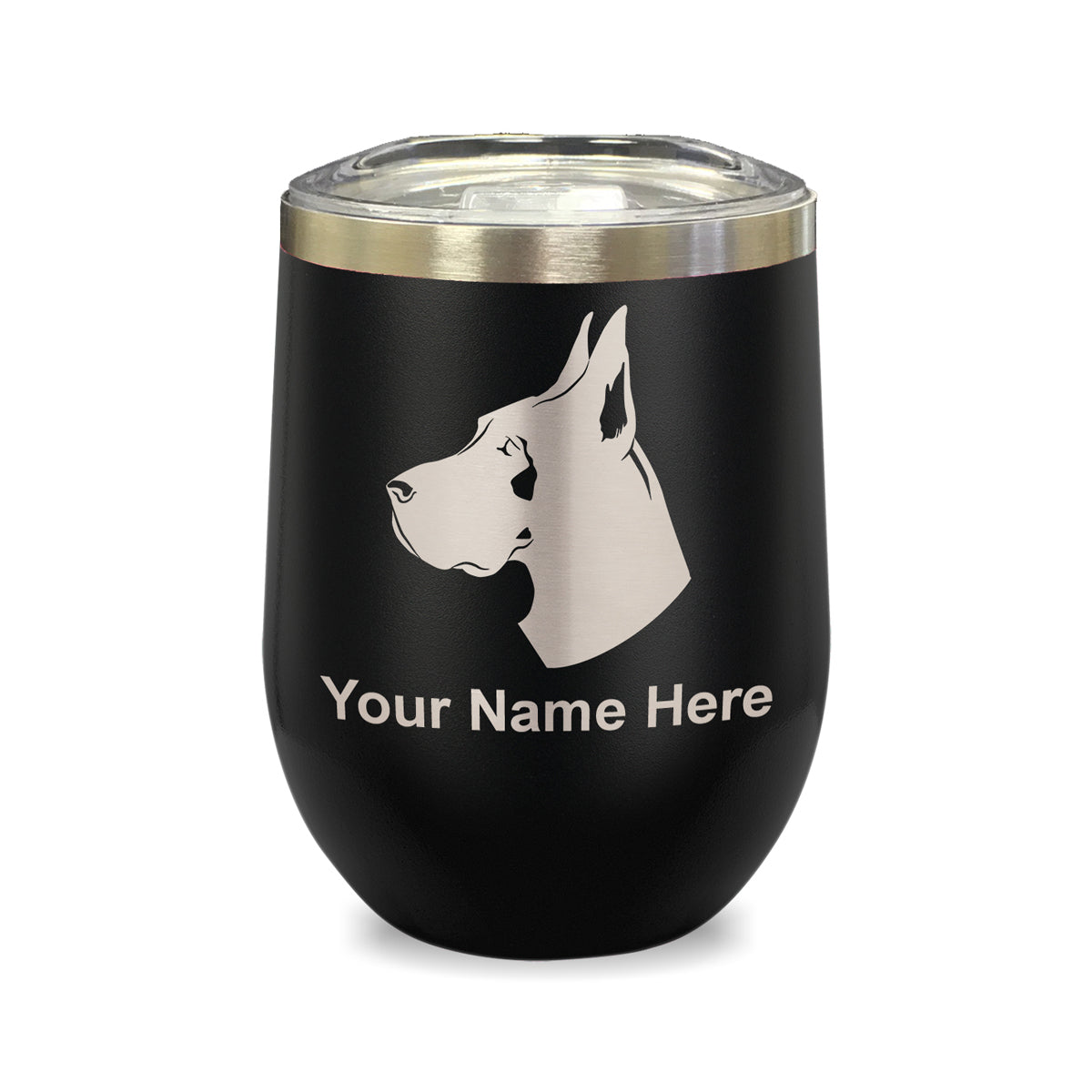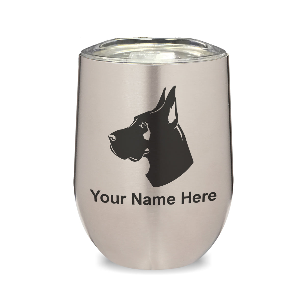 LaserGram Double Wall Stainless Steel Wine Glass, Great Dane Dog, Personalized Engraving Included